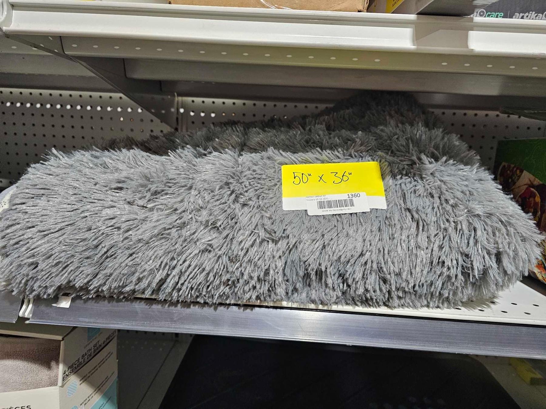 Grey Faux Fur Throw Rug - 50x36"