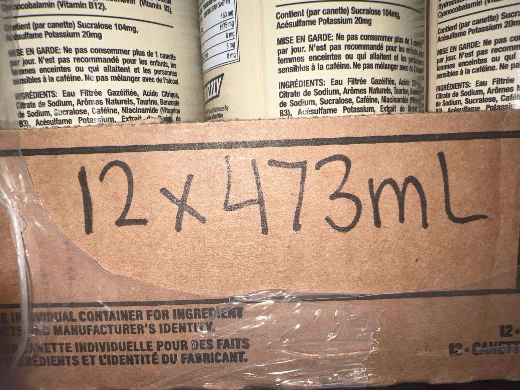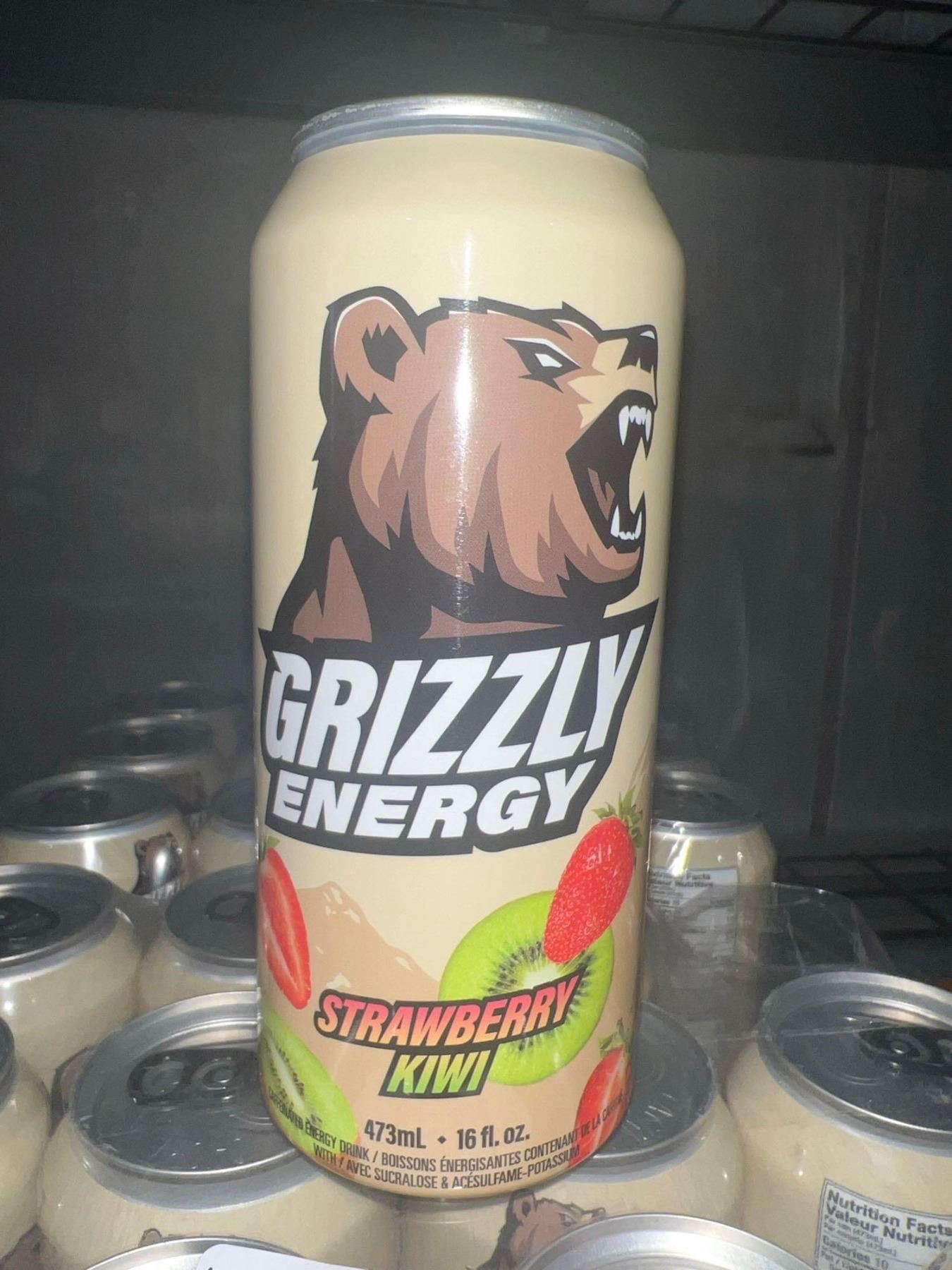 Grizzly Energy zero sugar strawberry kiwi caffeinated energy drink 12 x 473ml