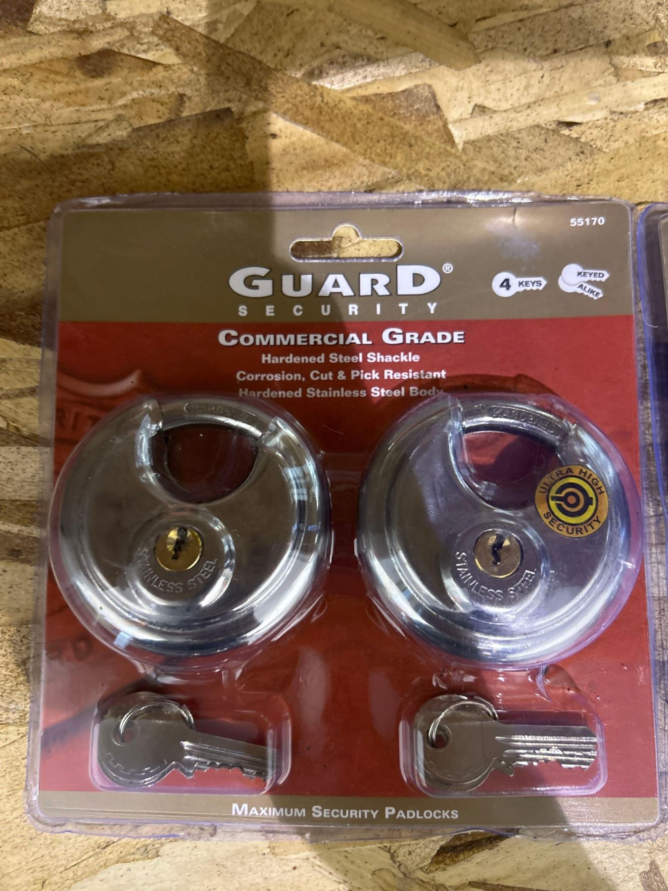 Guard security commercial grade hardened steel locks with keys. 2 packs of 2 locks