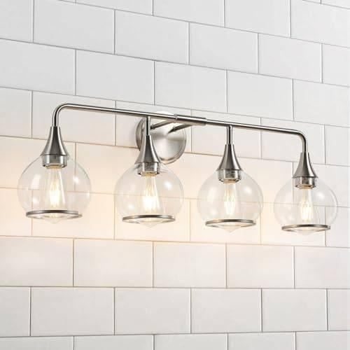 HAHZT Brushed Nickel Bathroom Vanity Light 4 Lights Bathroom Light Fixtures Over Mirror with Clear G