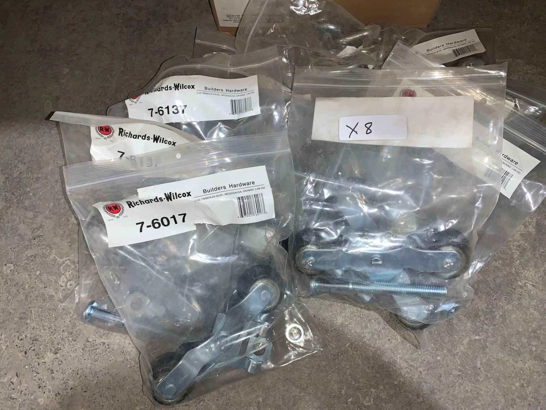 HANGER W BOLTS, 7-6017, BOX TRACK, 5 3/4 X 3 1/2 IN, STEEL/ZINC - Lot of 8