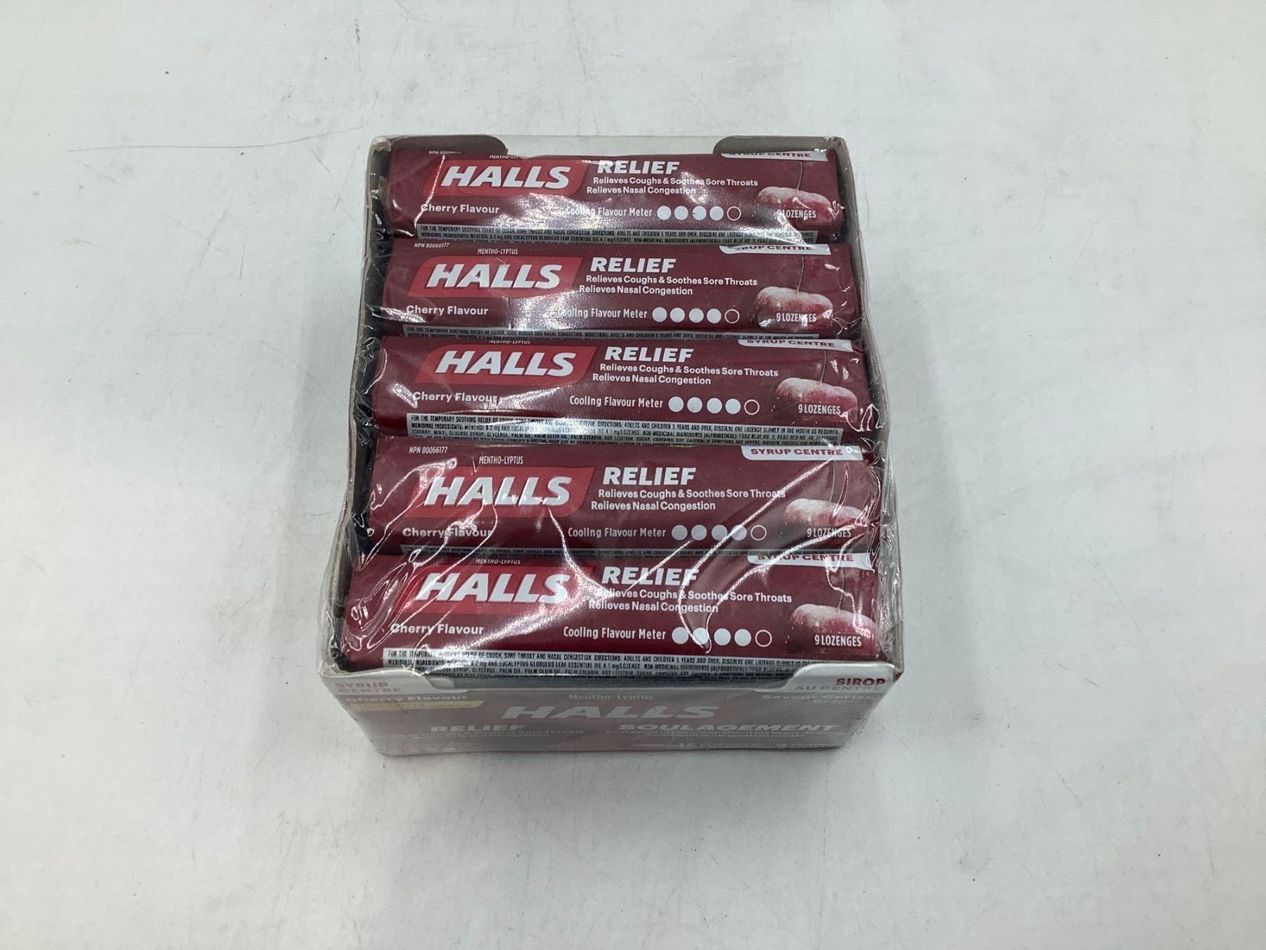 Halls Syrup Center Cherry Cough Lozenges 15 packages of 9