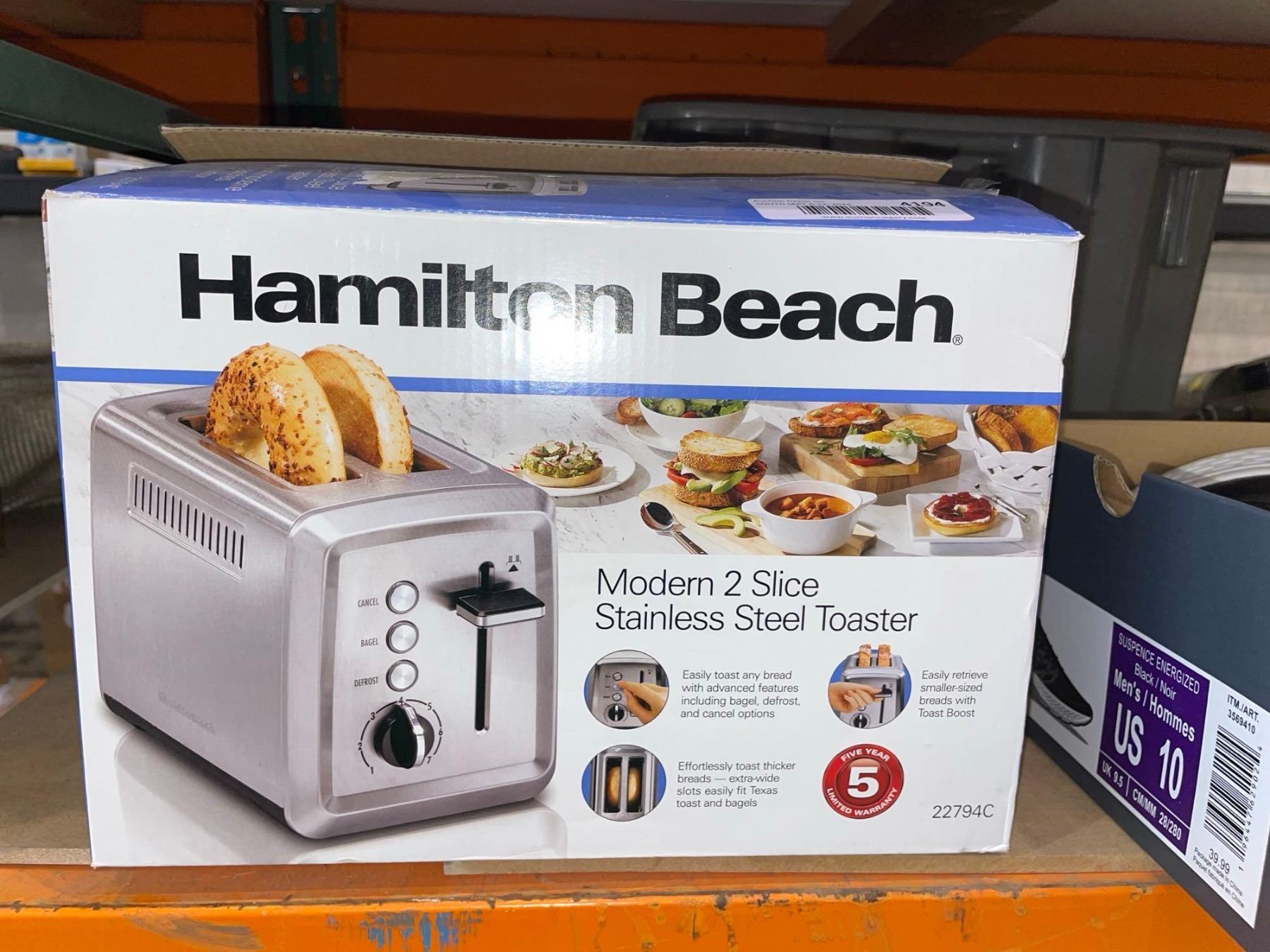 Hamilton Beach 2 Slice Toaster with Extra-Wide Slots, Bagel Setting, Toast Boost, Slide-Out Crumb Tray, Auto-Shutoff & Cancel Button, Defrost Function, Stainless Steel (22794)