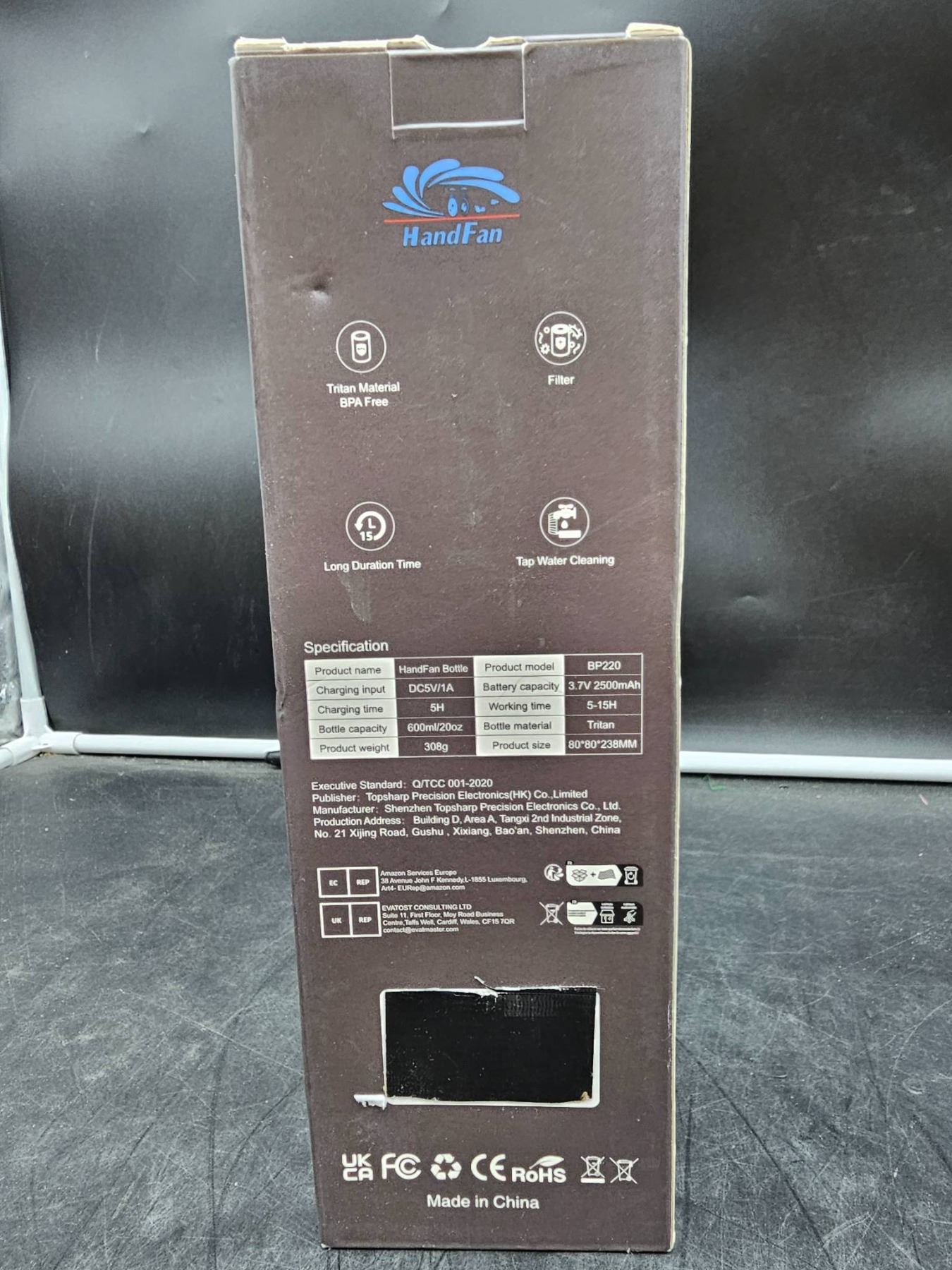 HandFan 600ml 2oz Portable Fan and Bottle Combination in Black