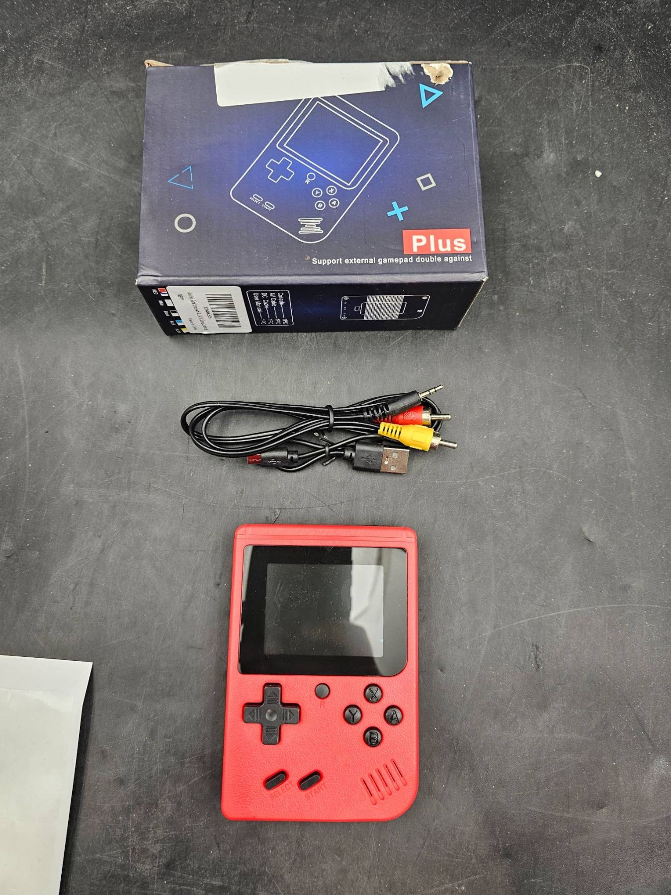Handheld Gaming Console with AV Cables and Red Unit Design