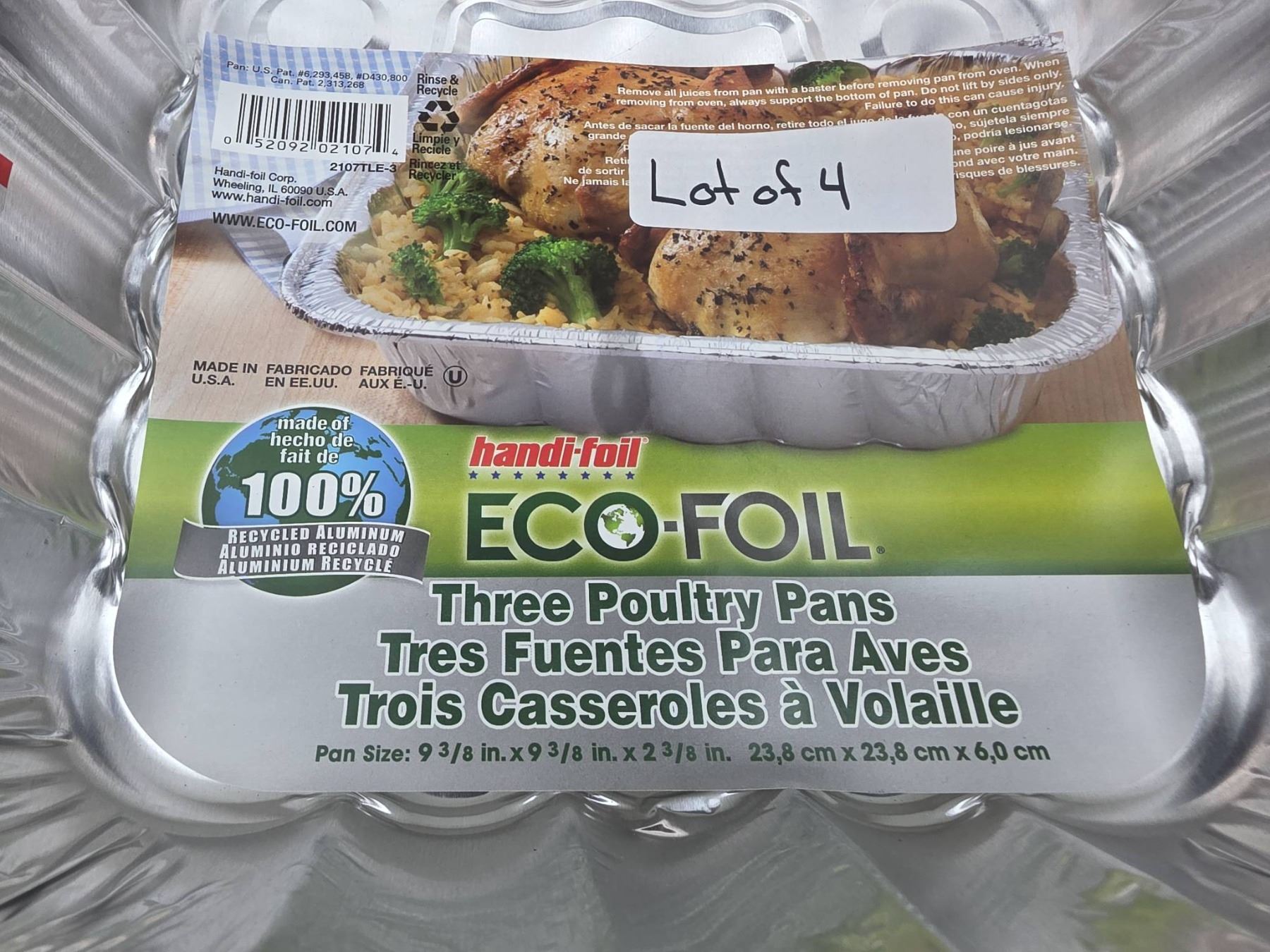 Handi-Foil Eco-Foil Poultry pans , Lot of 4x 3 pc 9.375 in x 9.375 in x 2.625 in (