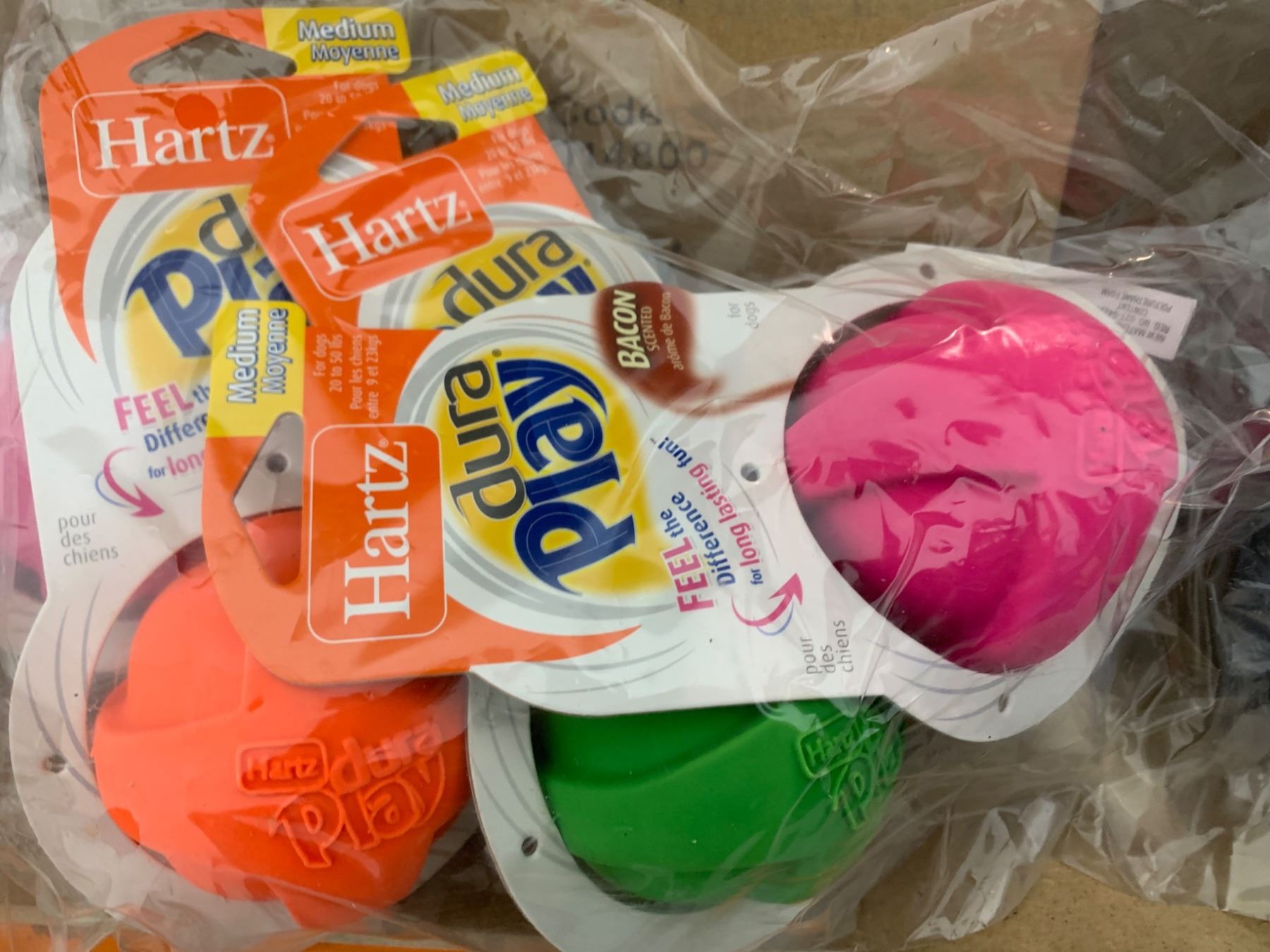 Hartz Dura Play Medium Dog Toys, Various Colors, Bacon Scent LOT OF 6