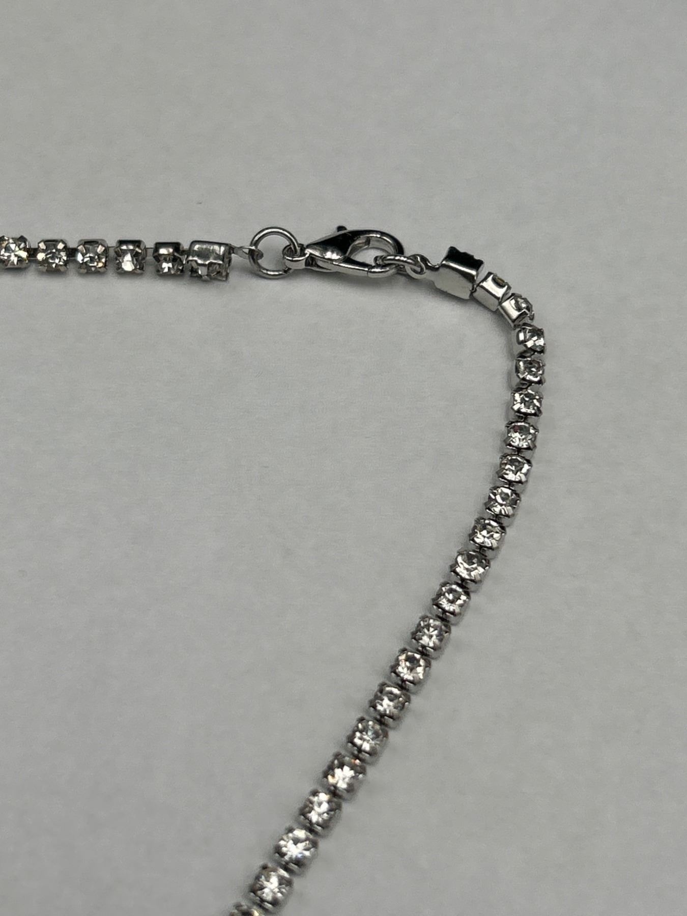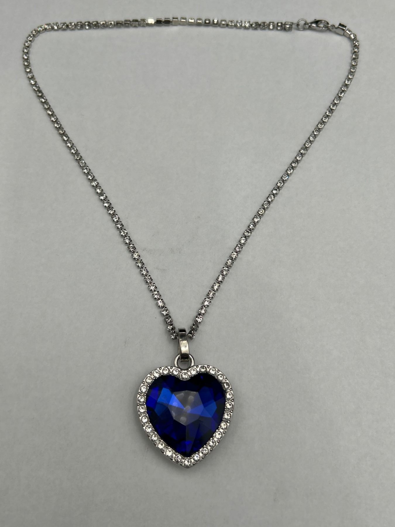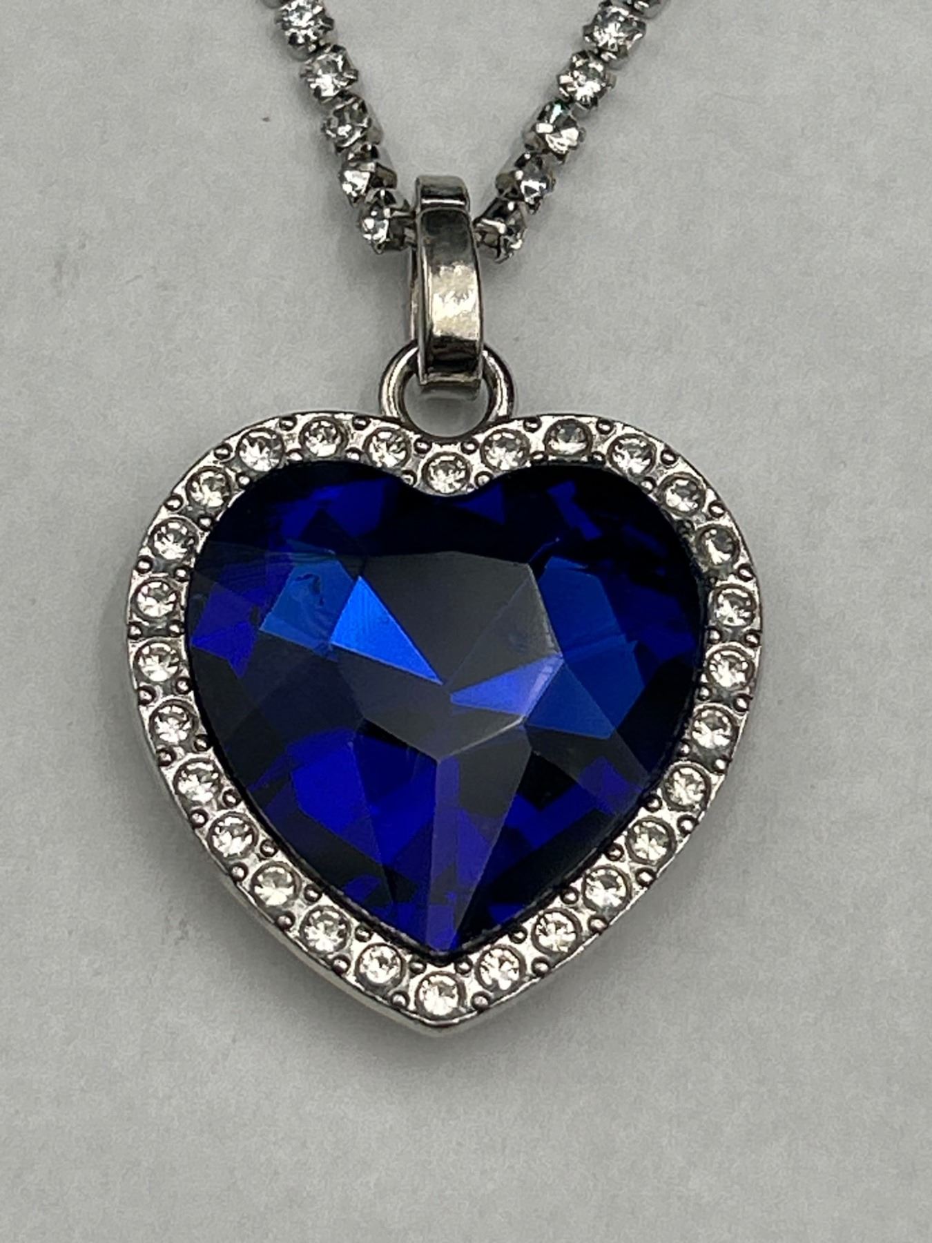 Heart-Shaped Blue Gemstone Pendant Necklace with Rhinestone Chain