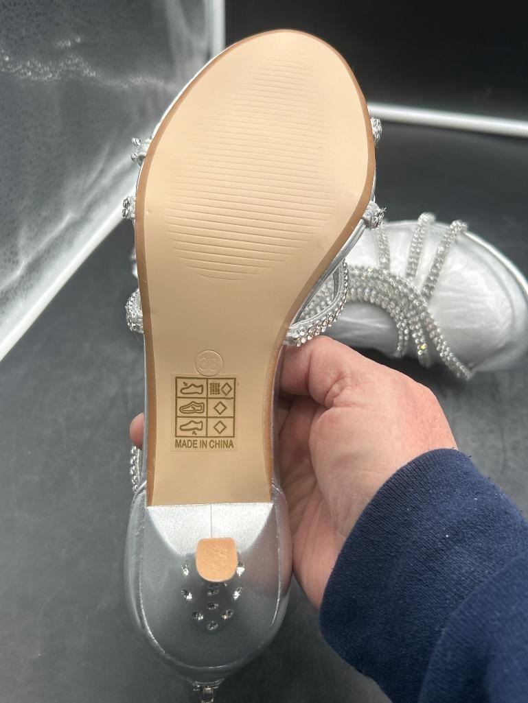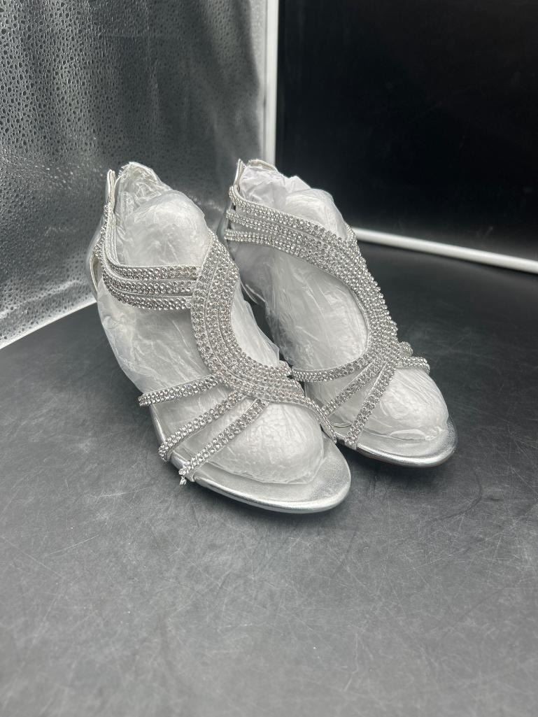 Heeled Ladies Shoes with Rhinestone Embellishments, Size 38,