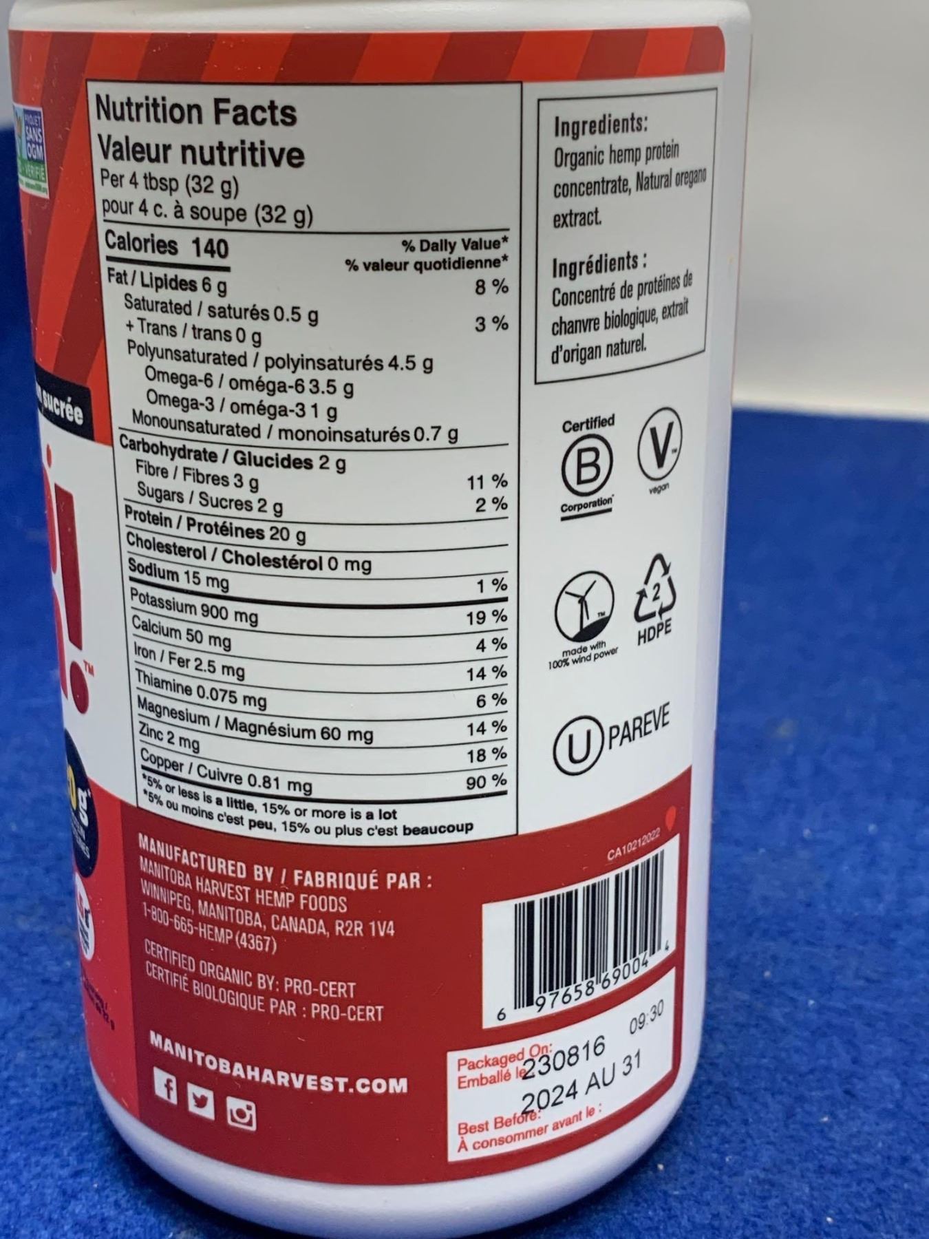 Hemp Yeah Organic Max Protein Powder (454g)