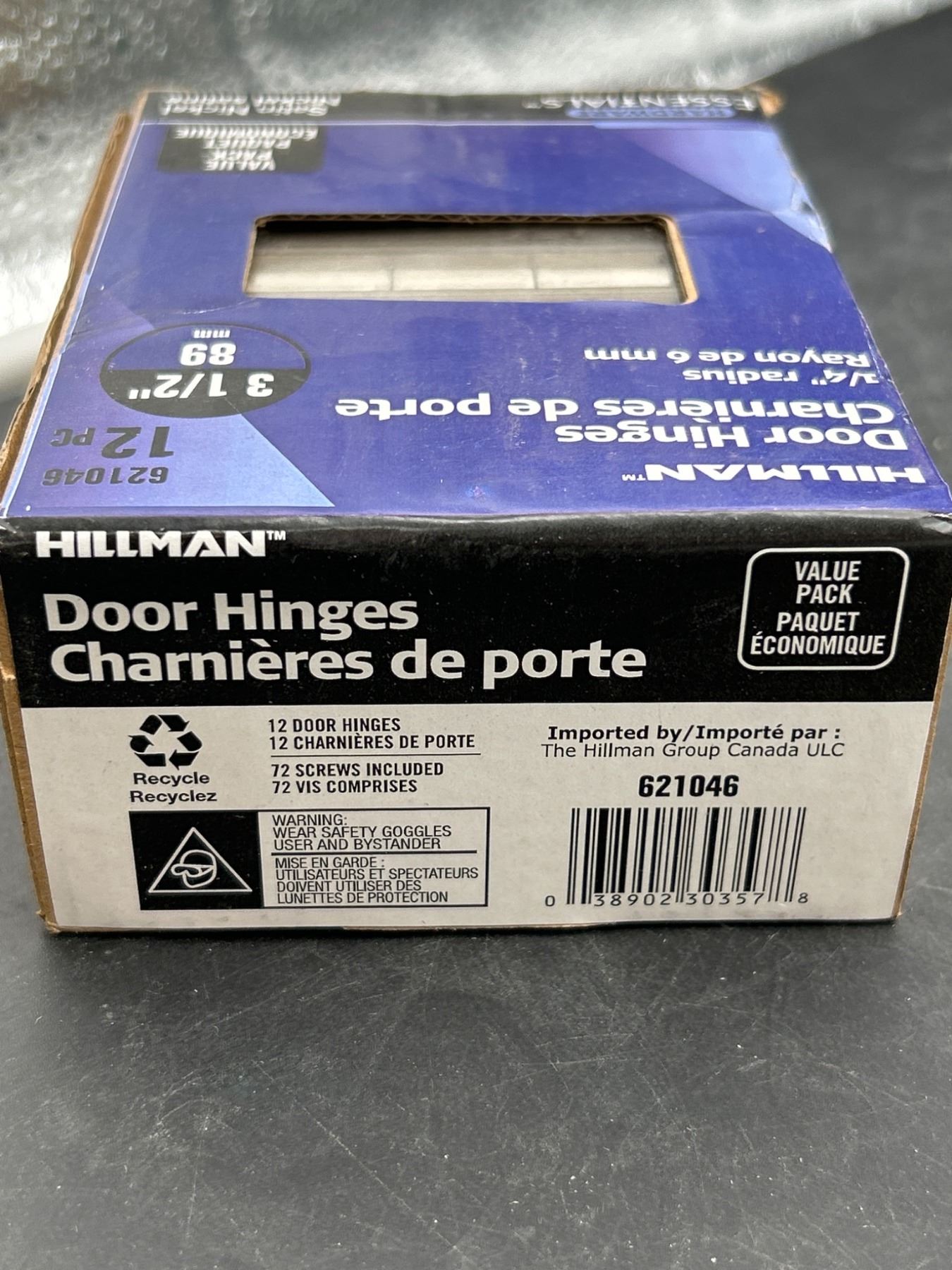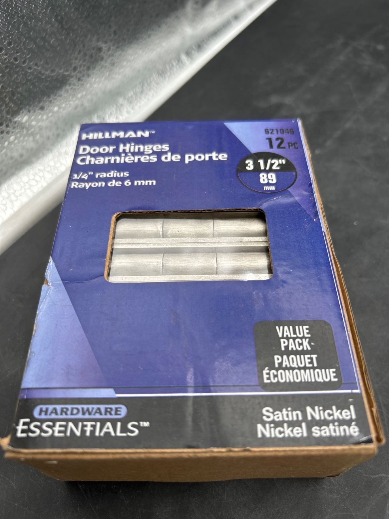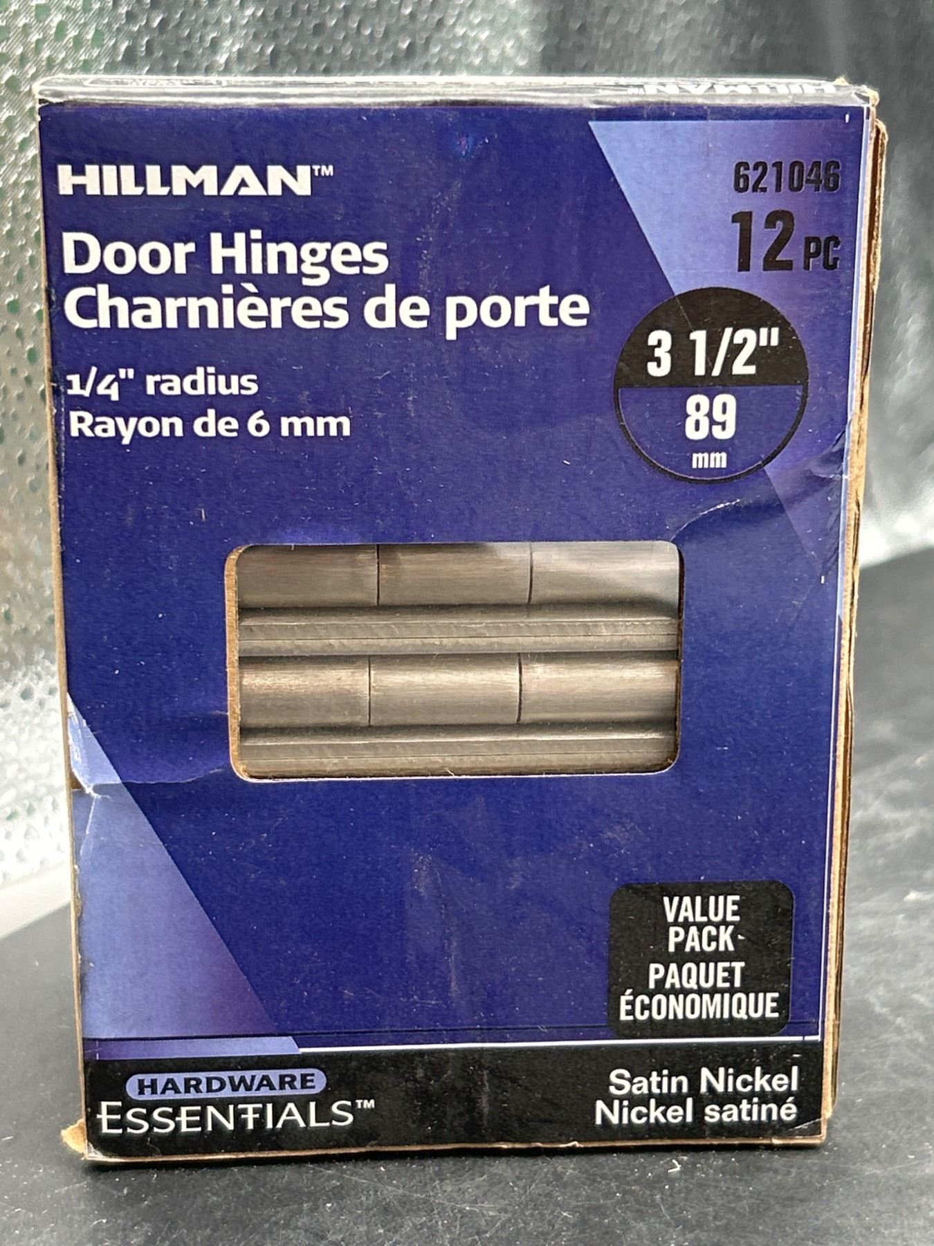 Hillman Hardware Essentials Door Hinges, Satin Nickel, 3 1/2 in, 12 Pieces