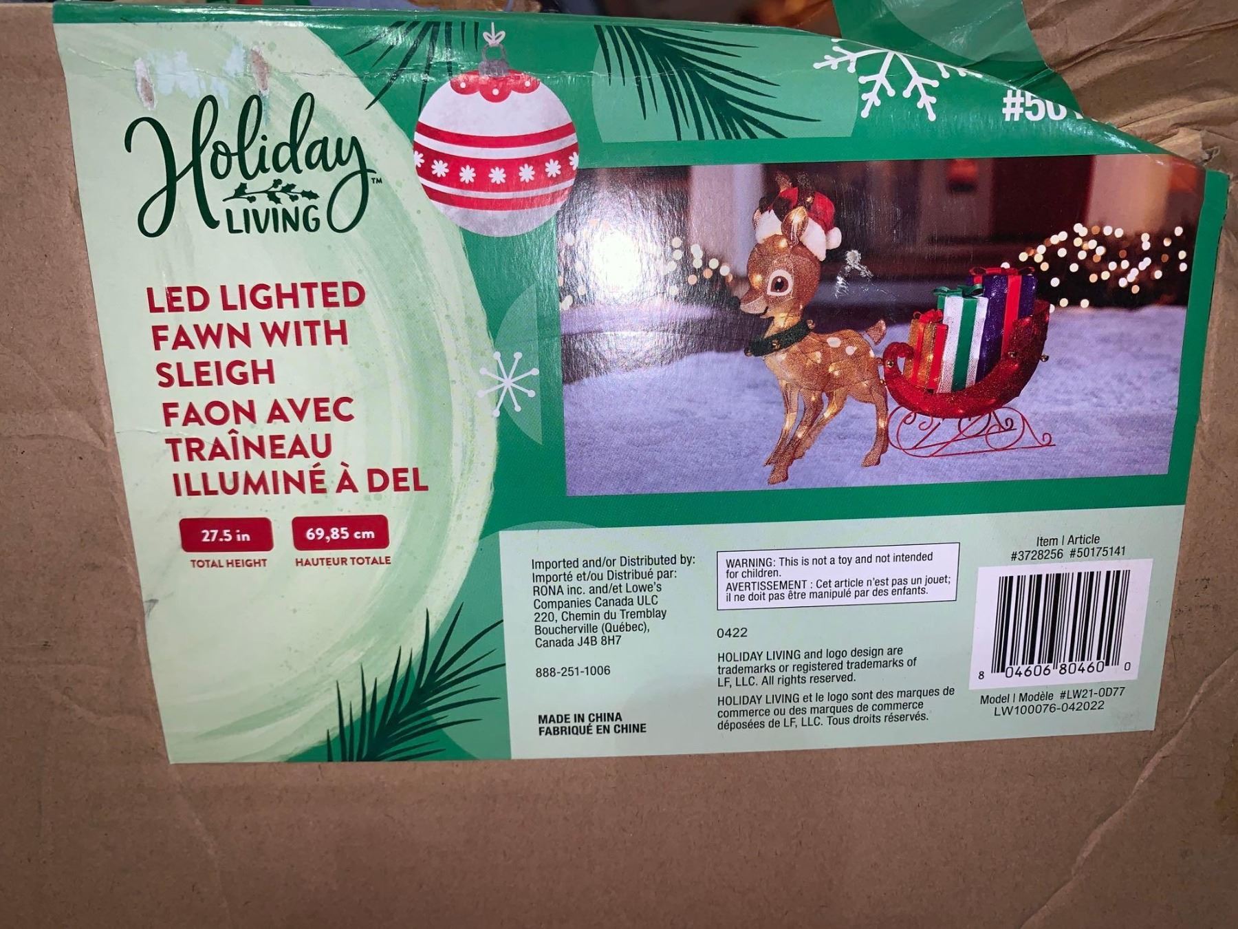 Holiday Living LED Lighted Fawn with Sleigh 27 inch Outdoor ornament