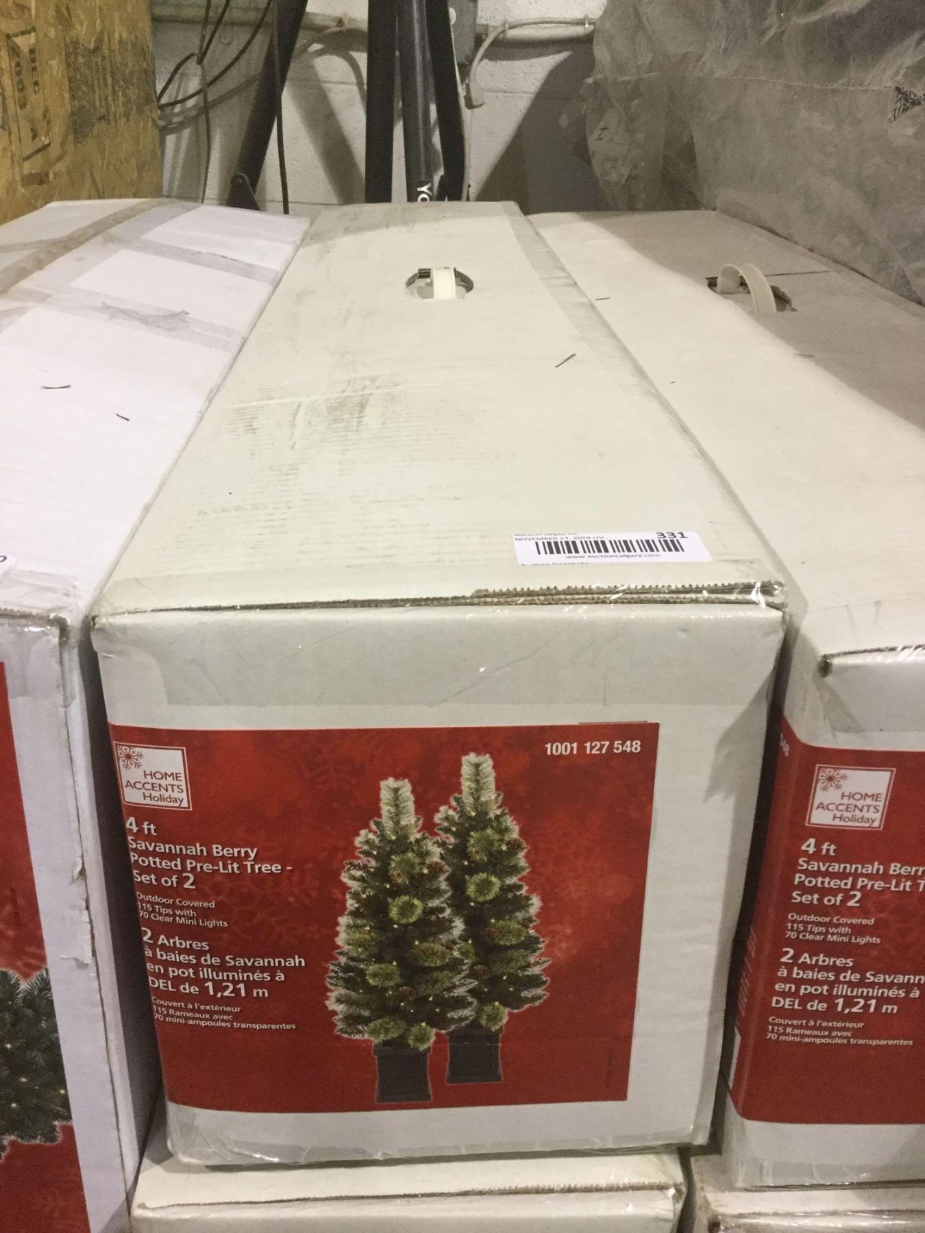 Home Accents Holiday 4' Savannah Berry Potted Pre-Lit Tree 2-Pack