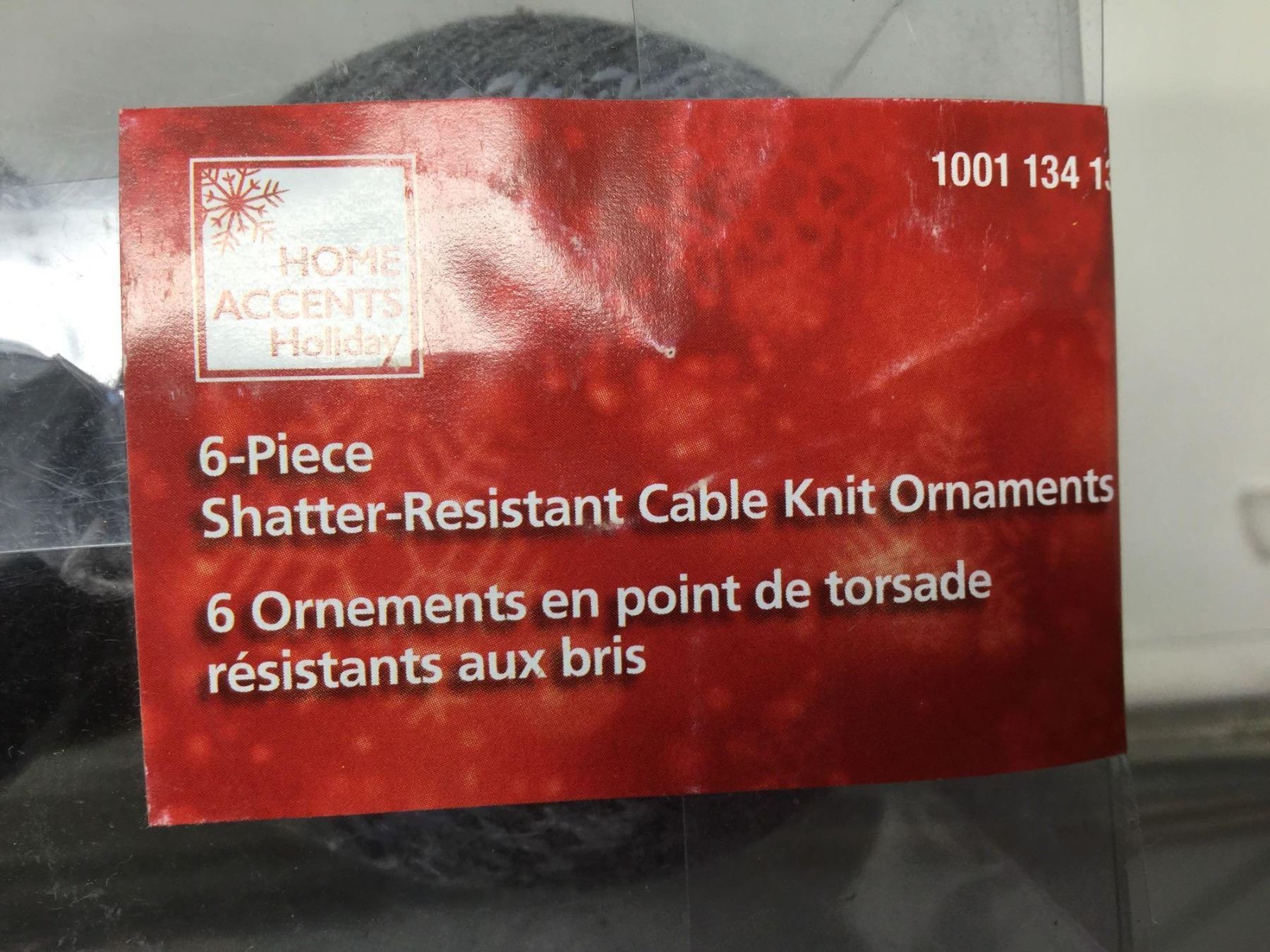 Home Accents Holiday 6-Piece Shatter Resistant Cable Knit Ornaments