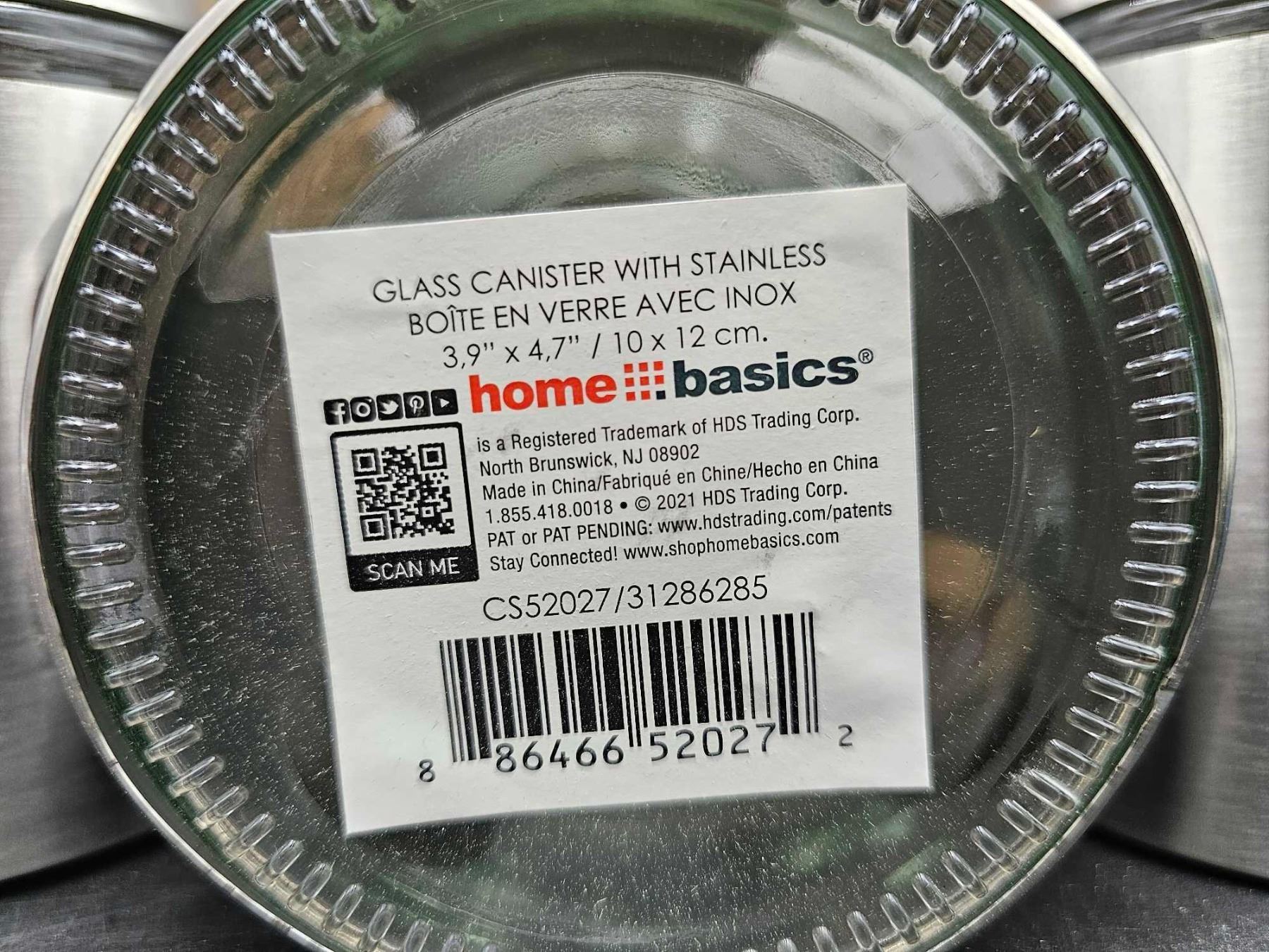 Home Basics Glass Canister with Stainless (2.9in x 4.7in) 3pk
