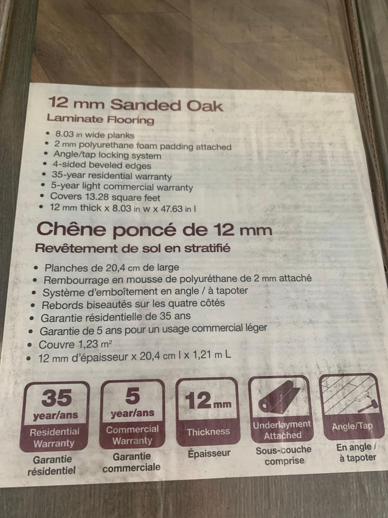 Home Decorators 12 mm Sanded Oak Polyurethane Padded  Laminate Flooring -CASE LOT 13.28 SQ FT