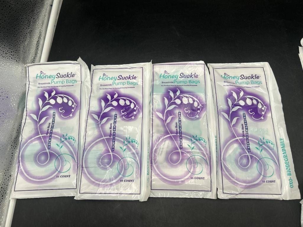 Honeysuckle Breast Milk Pump Bags,  Biodegradable 25 Bags x 4