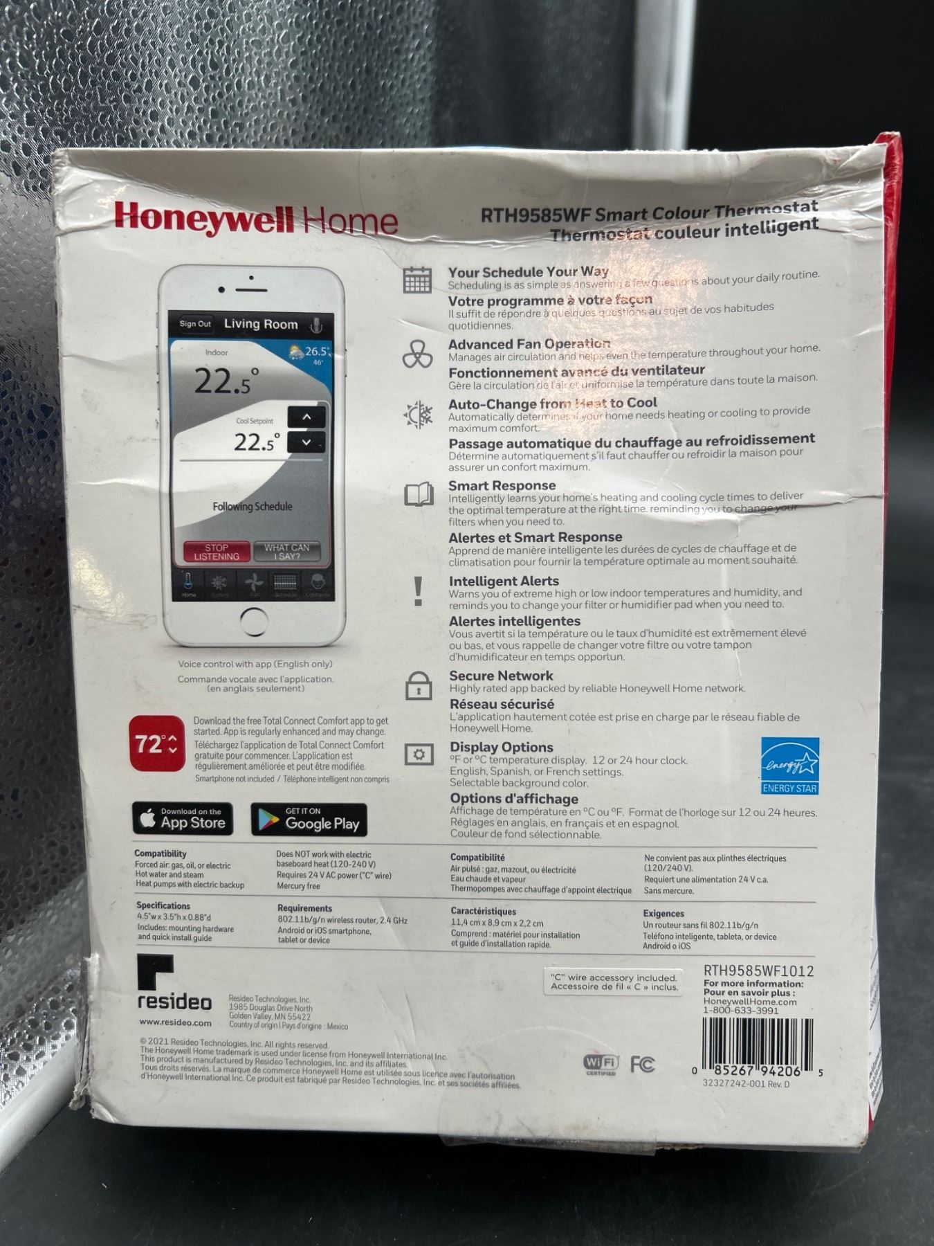 Honeywell Home RTH9585WF Wi-Fi Smart Colour Thermostat, 7-Day Programmable, Touchscreen, Energy Star