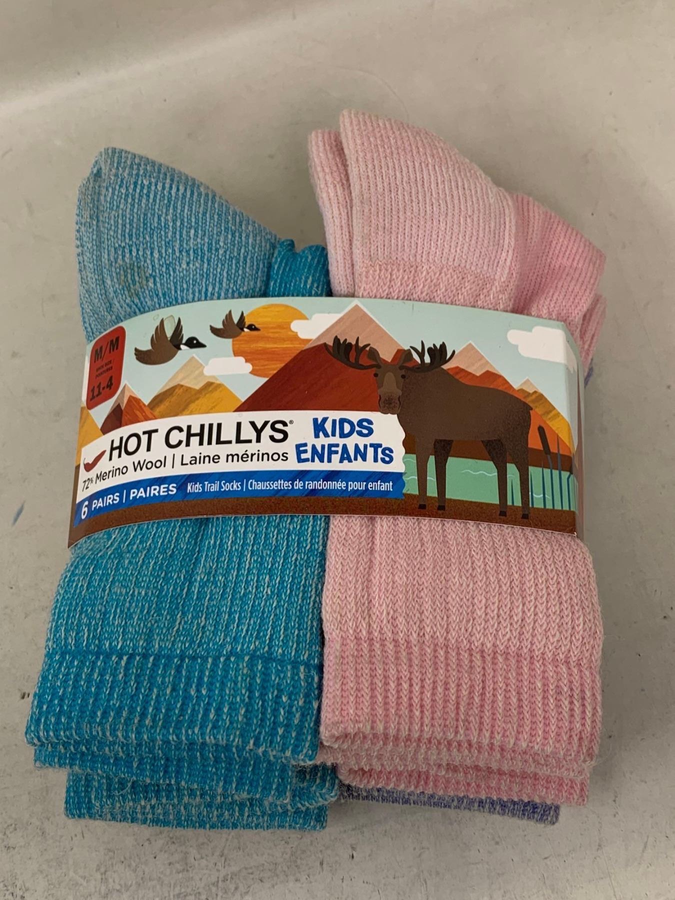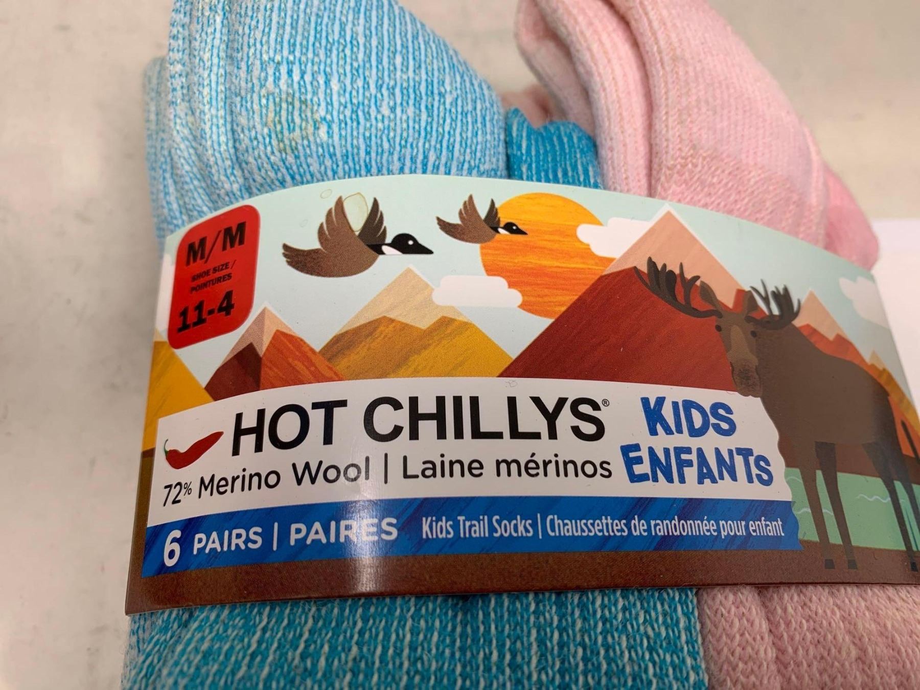 Hot Chilly's Kids Merino Wool Socks-6 pairs (size 11-14)