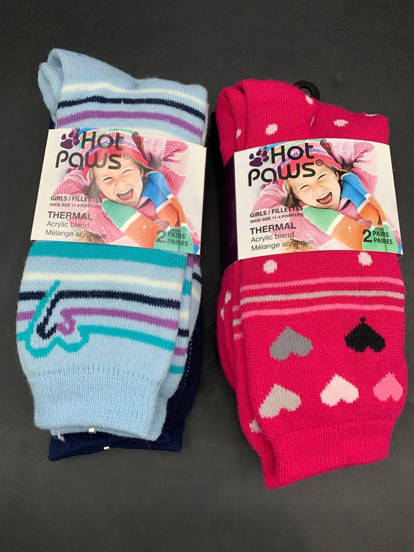 Hot Paws Girls Thermal Acrylic Blend (4pairs) Size 11-4