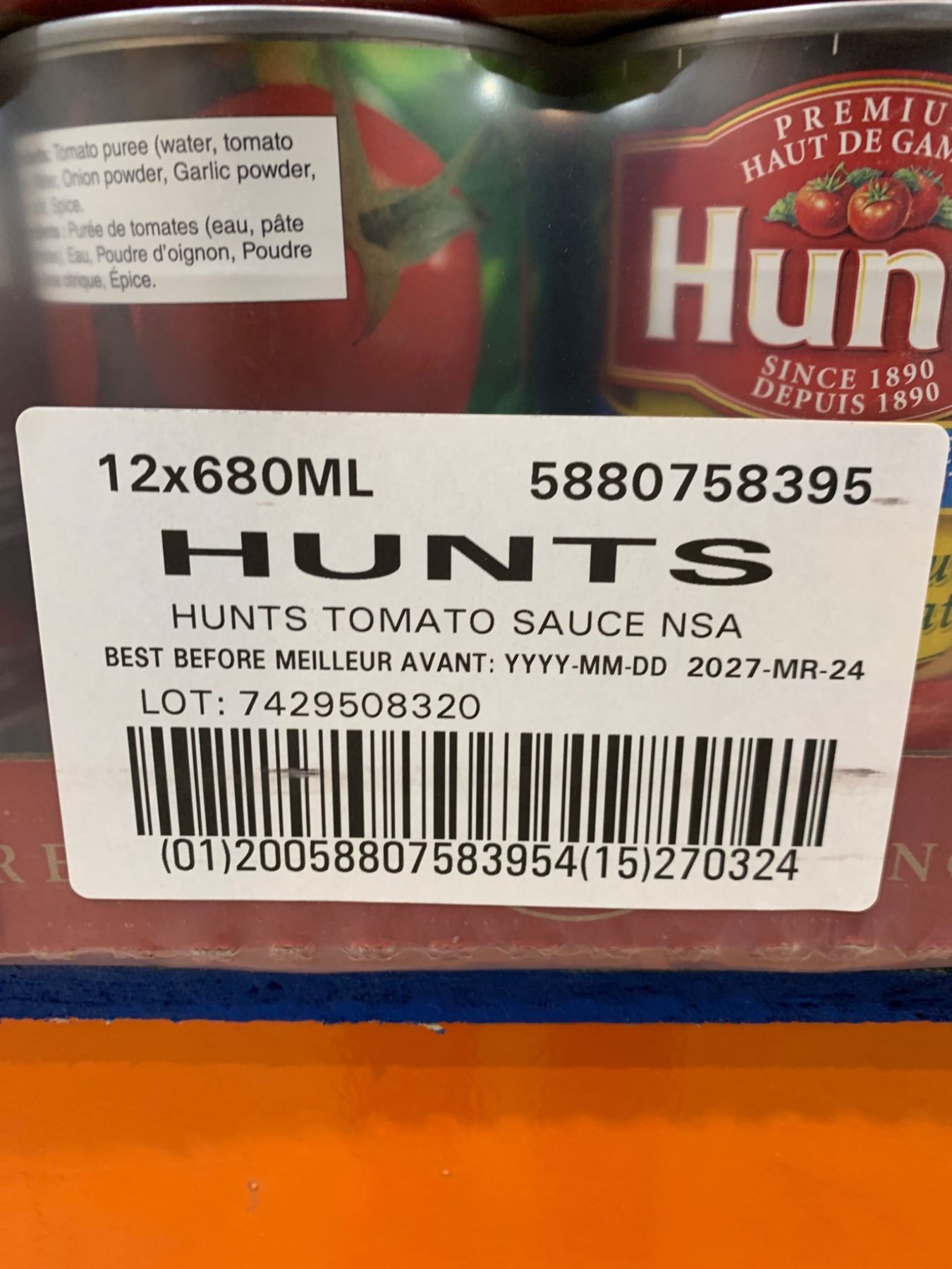 Hunt’s Tomato Sauce, NSA, 12 x 680 mL Cans