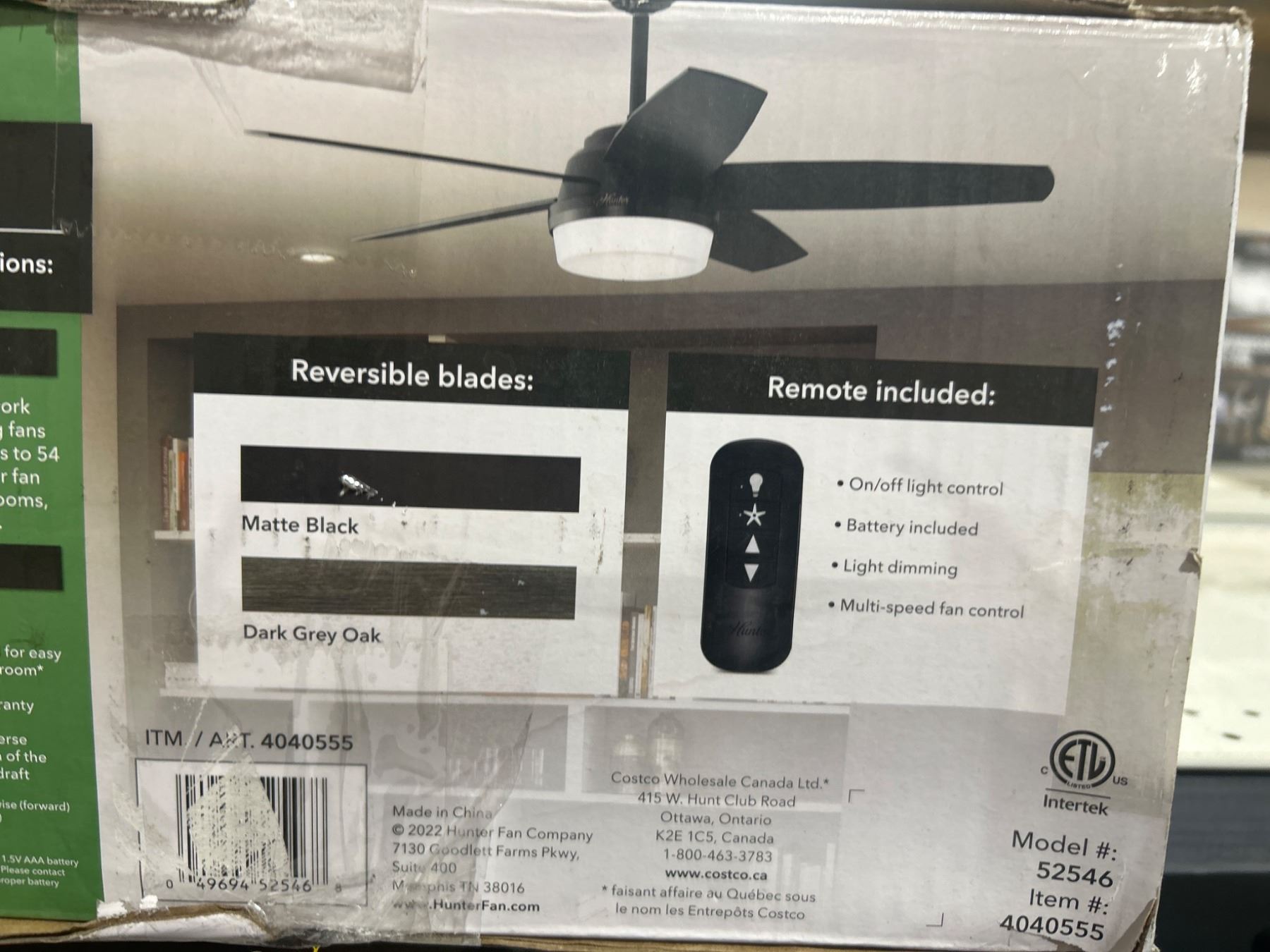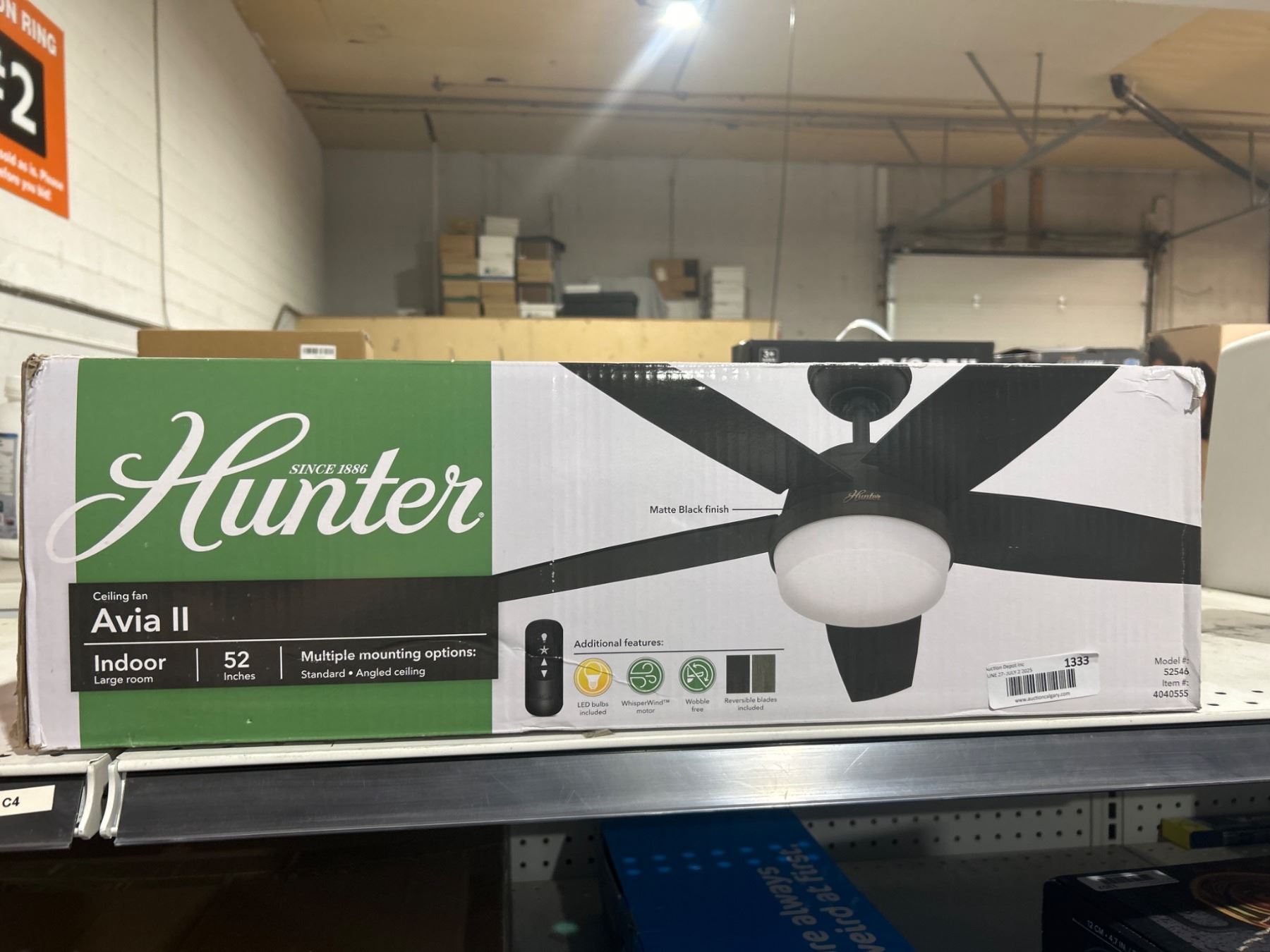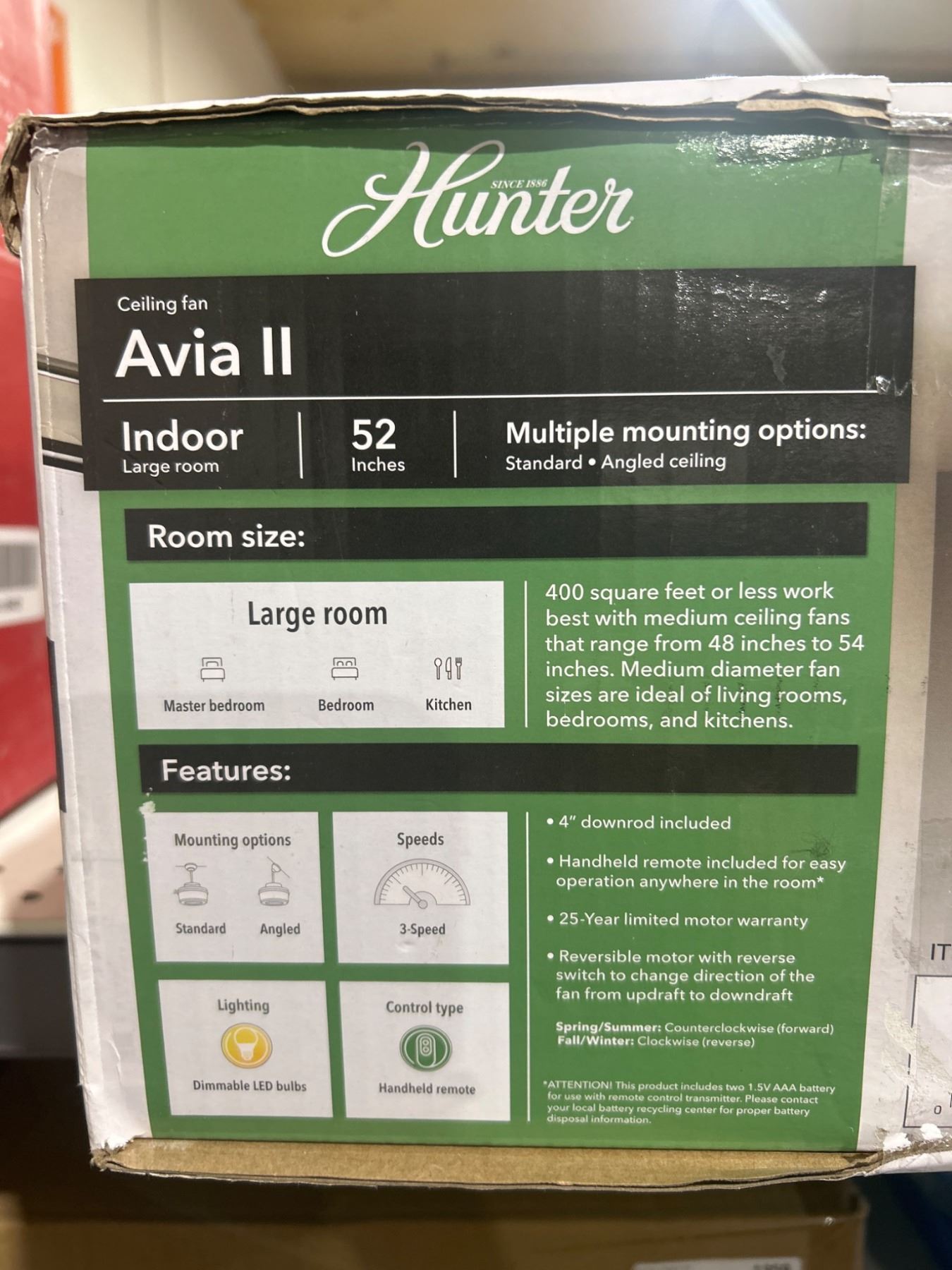 Hunter Avia II Indoor Ceiling Fan With Light, 52 Inches, Remote Included
