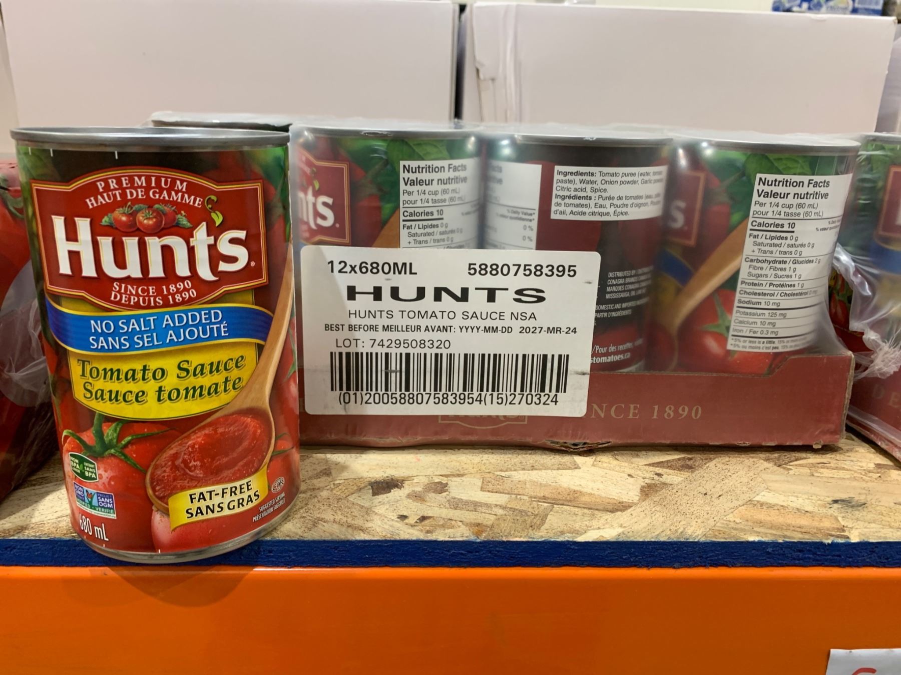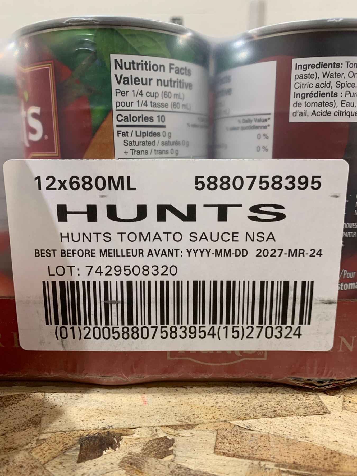 Hunts Tomato Sauce No Salt Added, 12x680ml Cans