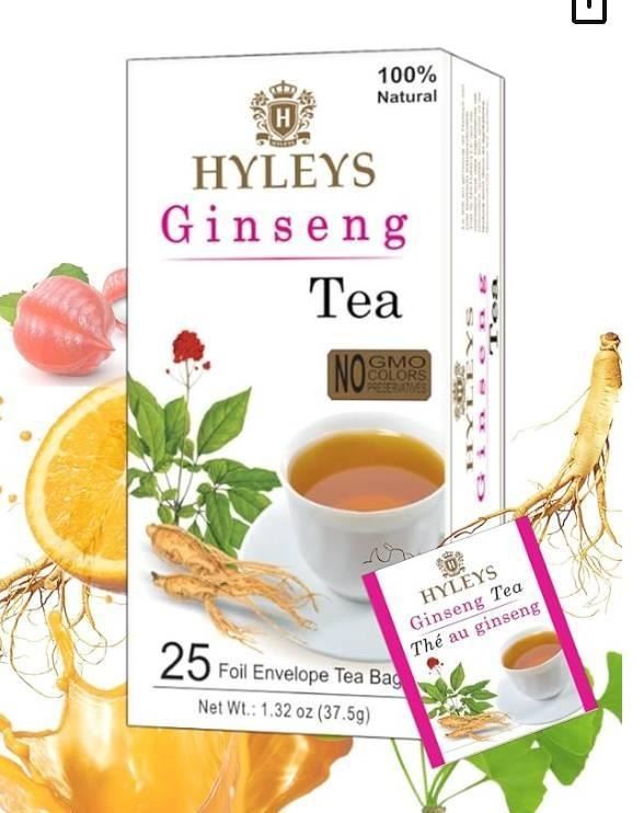 Hyleys Ginseng With Green Tea Herbal Supplement, 25 Tea Bags