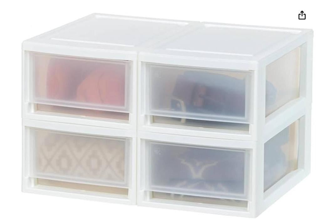 IRIS MSD-1 Clear Small Plastic Stacking Drawer, 4-Pack, Stackable Storage Organizer Unit with Slidin