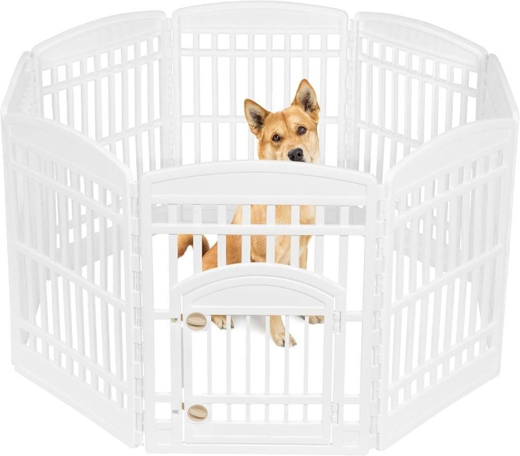 IRIS USA 8-Panel Dog Pen with Door, 88 cm Tall Foldable Fence Puppy Pet Playpen Indoor Outdoor – White