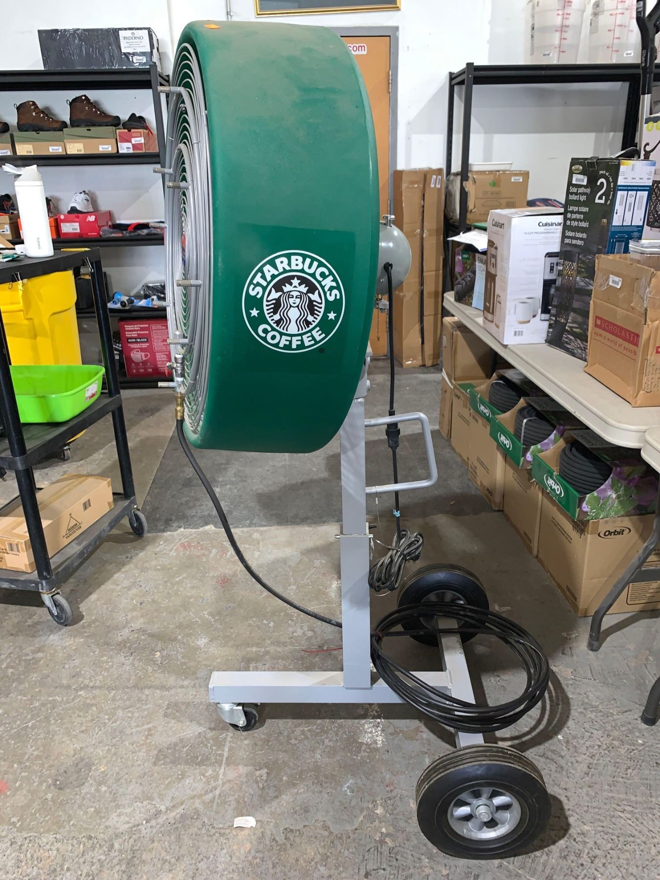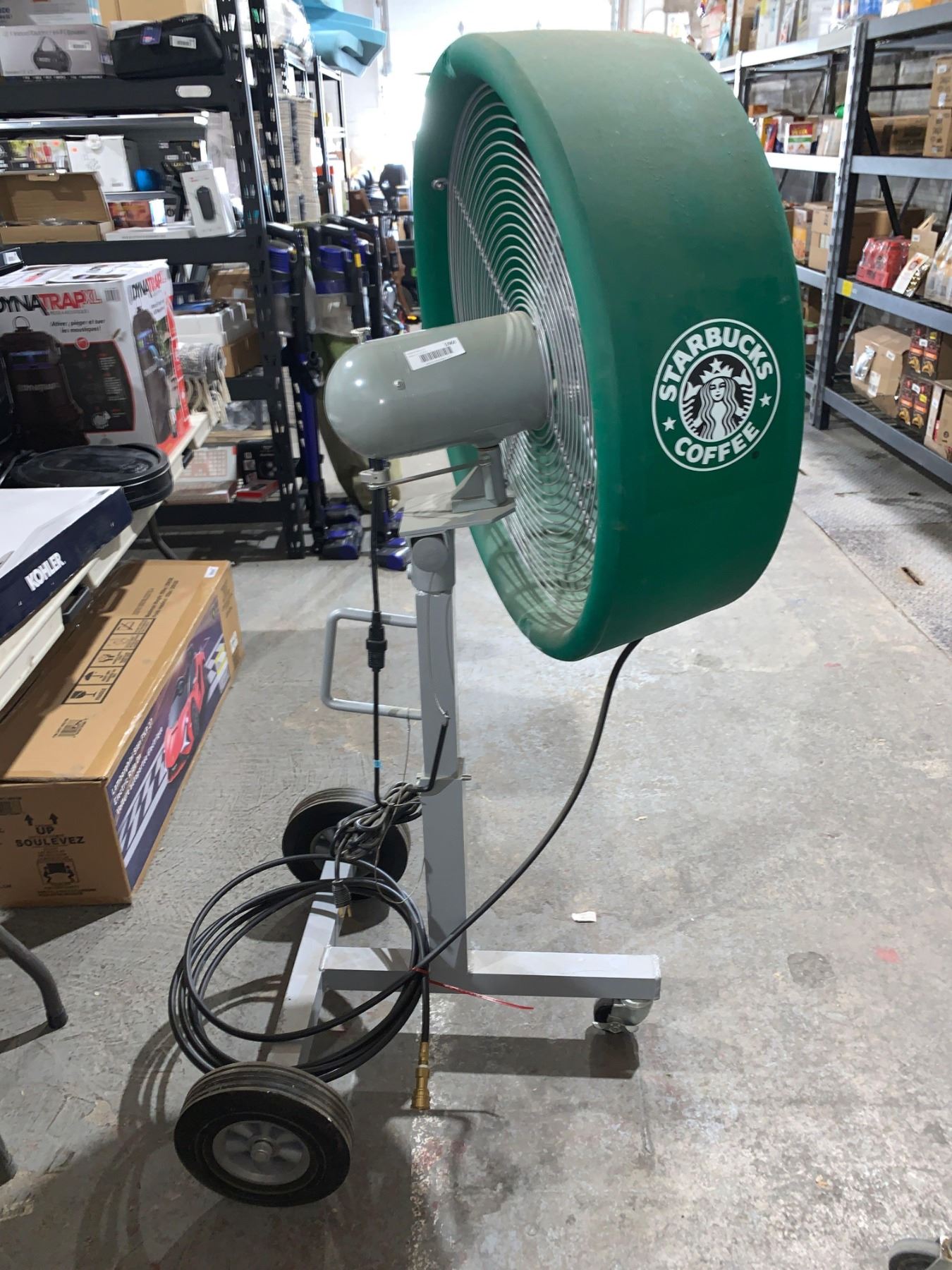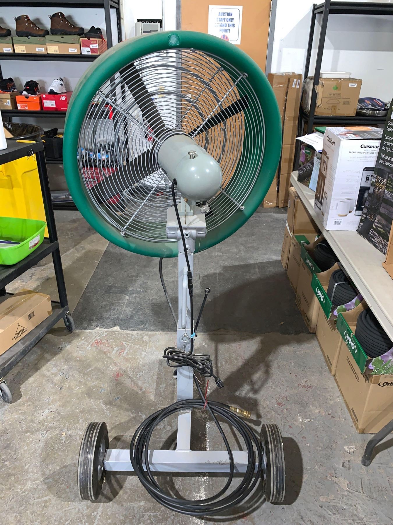Industrial Fan on Wheels with Quick Connect Water Misting Hose