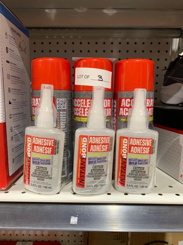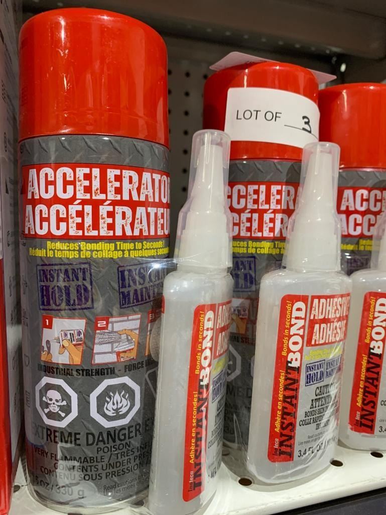 Instant Bond Adhesive and Accelerator Lot – Set of 3 Adhesive Bottles and Sprays