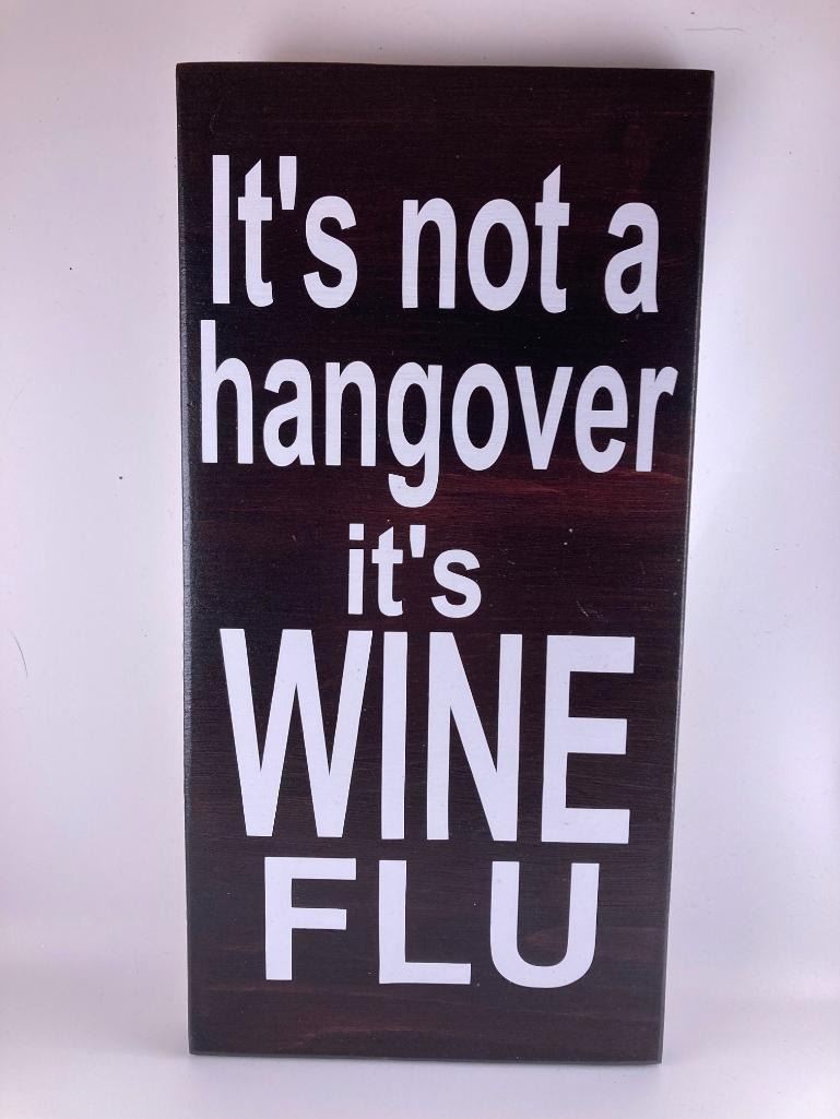 Its not a hangover its wine flu 6X12 Inches. Made of Pine. Hooks on Back