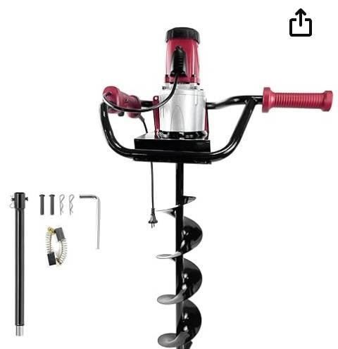 JACKCHEN 1500W Electric Post-Hole Digger with 6-Inch Auger Bit, Earth Auger Drill, Auger Bit Earth Auger, Ideal for Post Hole Digging, Drilling, Tree Planting, Red