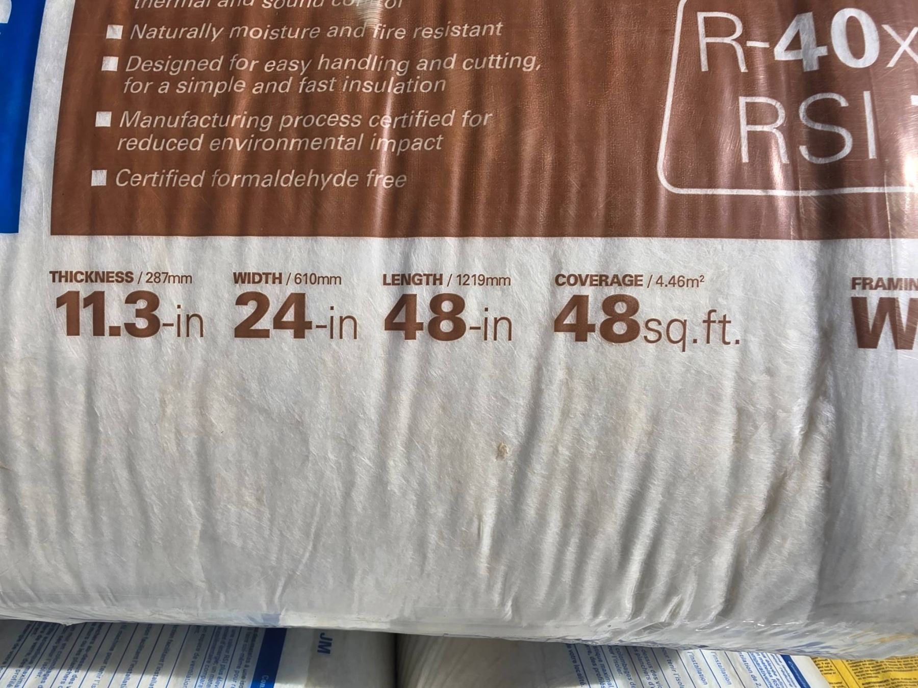 JOHNS MANVILLE R40 x 24″ Fiberglass Insulation, covers 48 sq. ft.