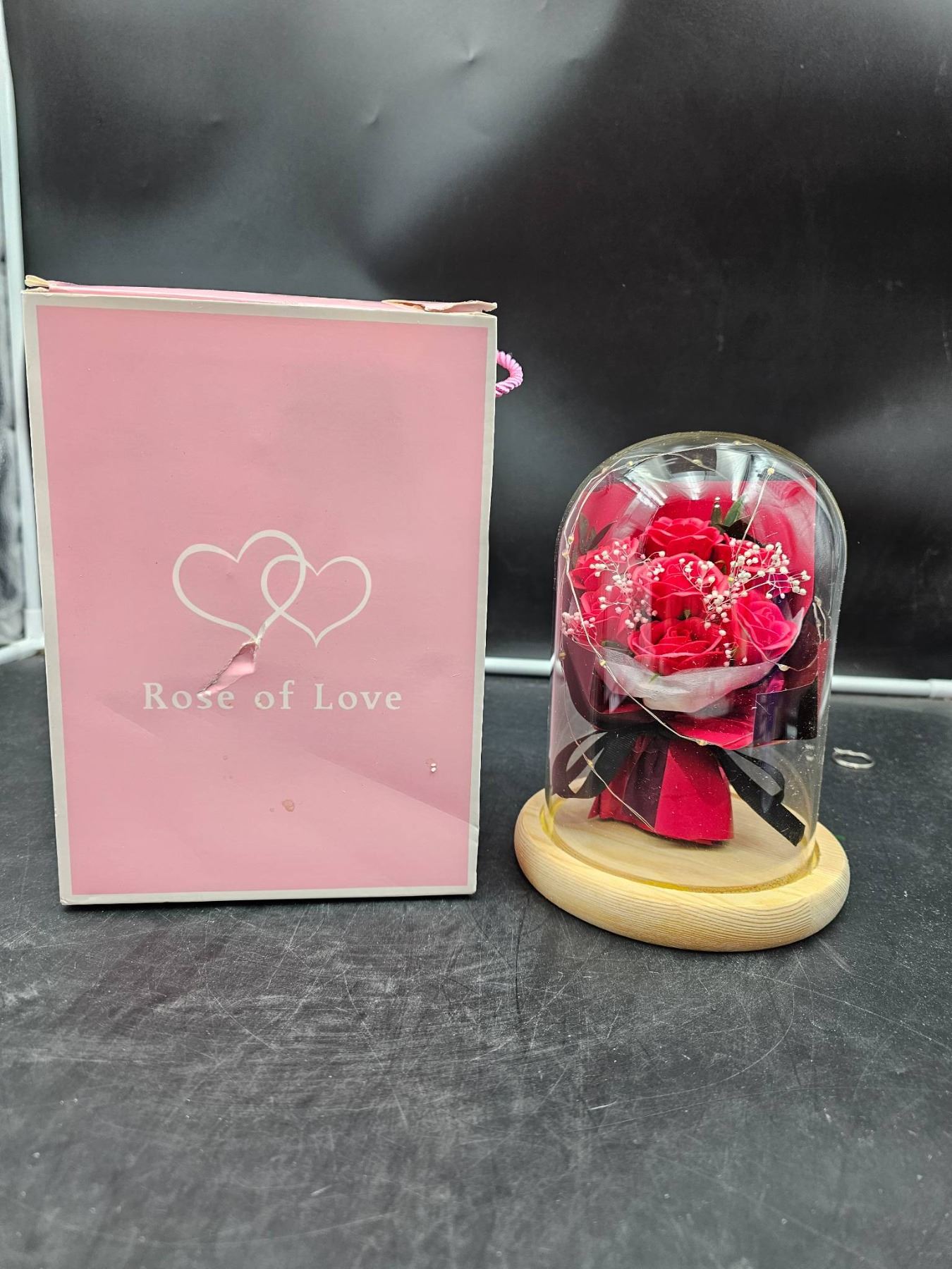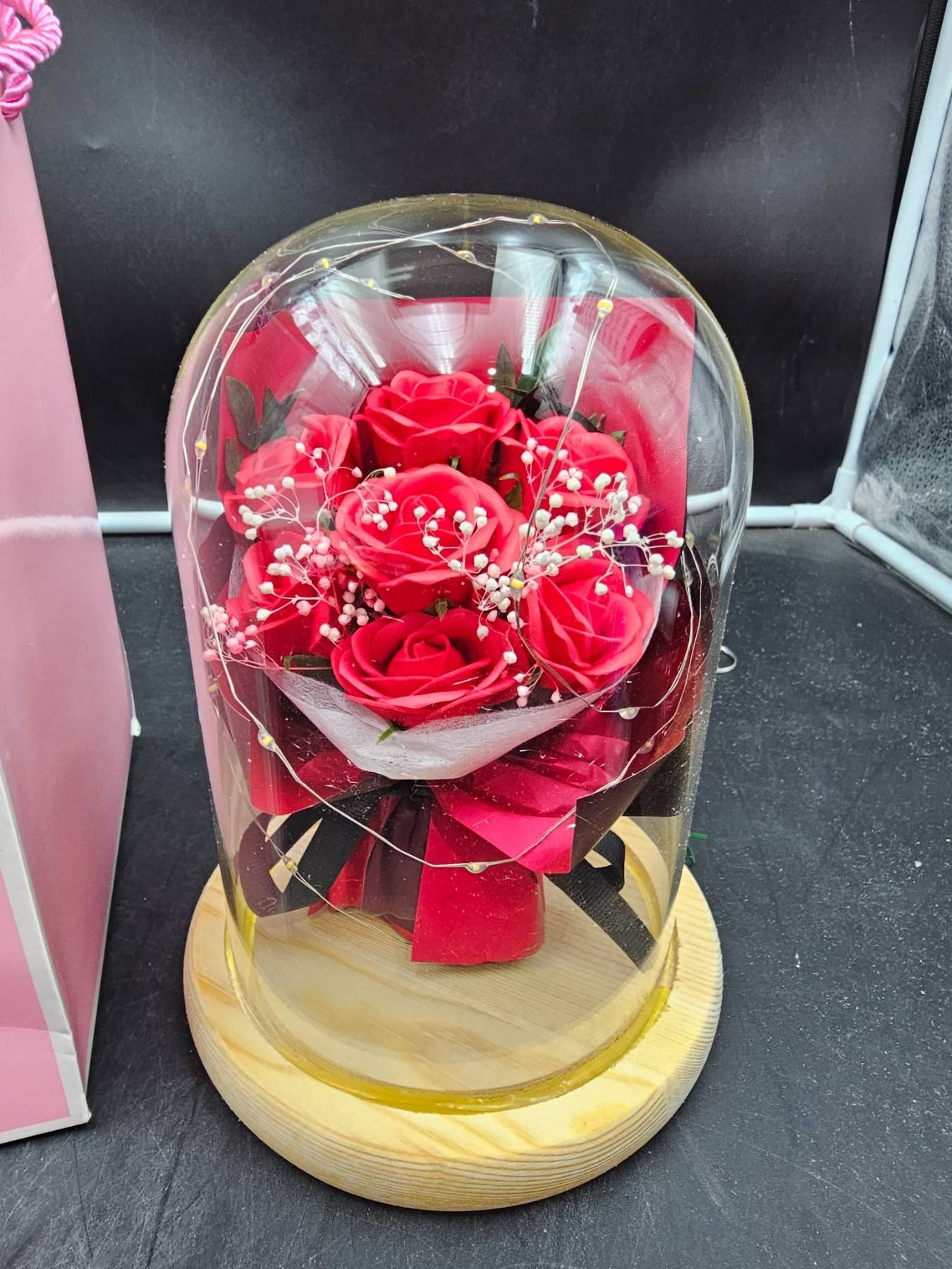JUNYANG Rose Flowers Gifts for Women, Rose Bouquet in Glass Dome with LED Light 2.7D x 12.7W x 24.9H Centimetres