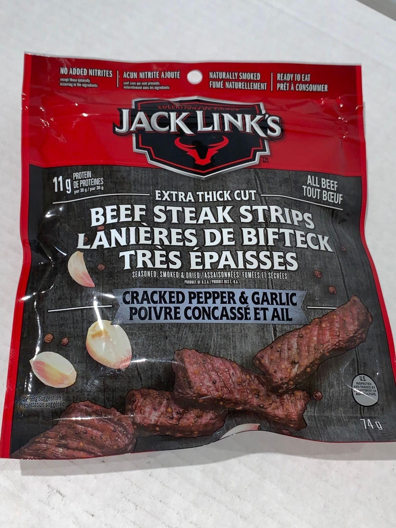 Jack Links Extra Thick Cut Beef Steak Strips , Cracked Pepper & Garlic - 74g