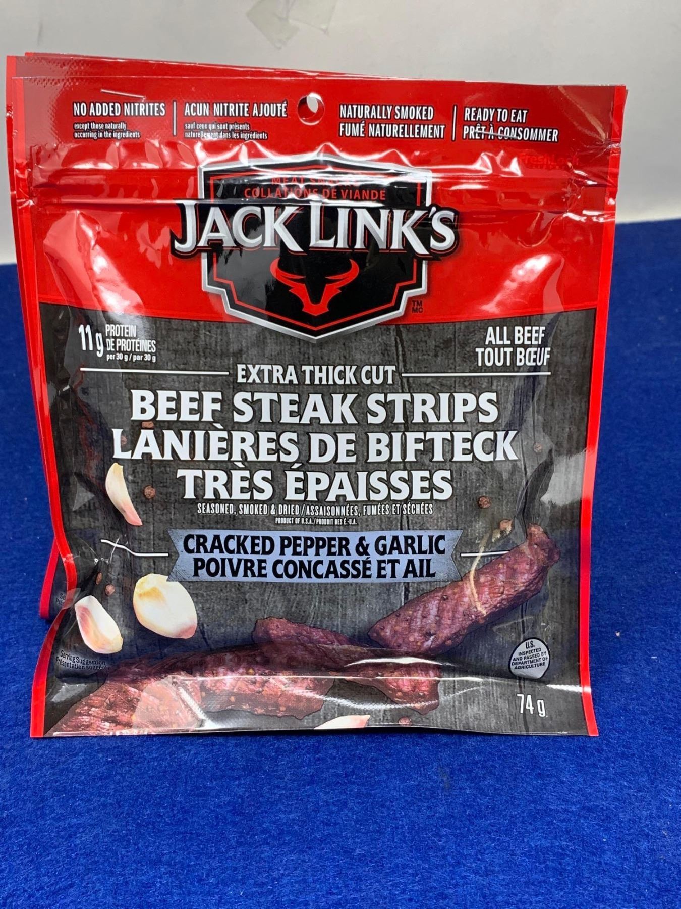 Jack Links Extra thick Cut Beef Steak Strips- Cracked Pepper & Garlic (74g x 3)