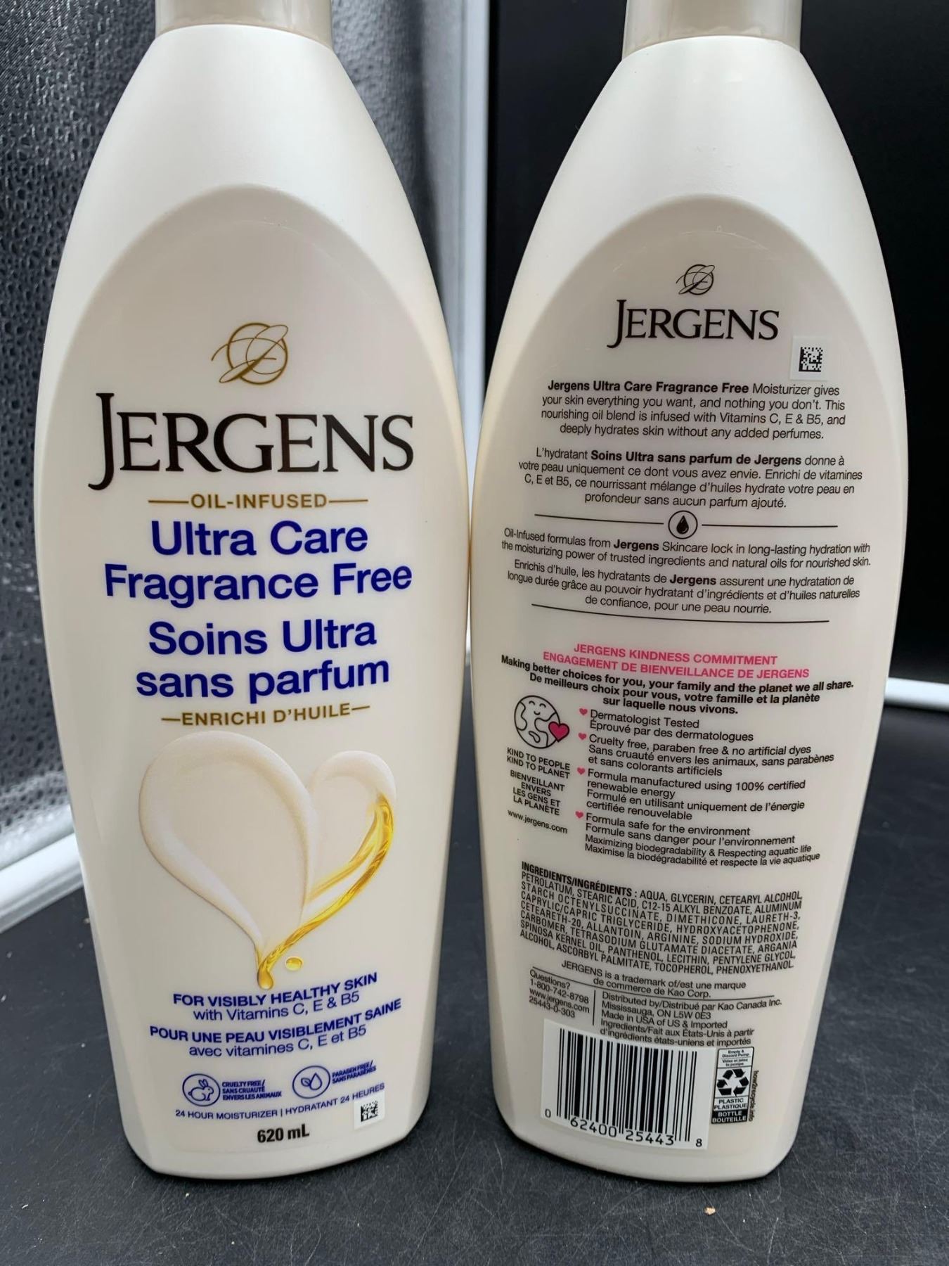 Jergens Ultra Care Fragrance Free Oil Infused 24 Hour Moisturizer (2 x 620ml)