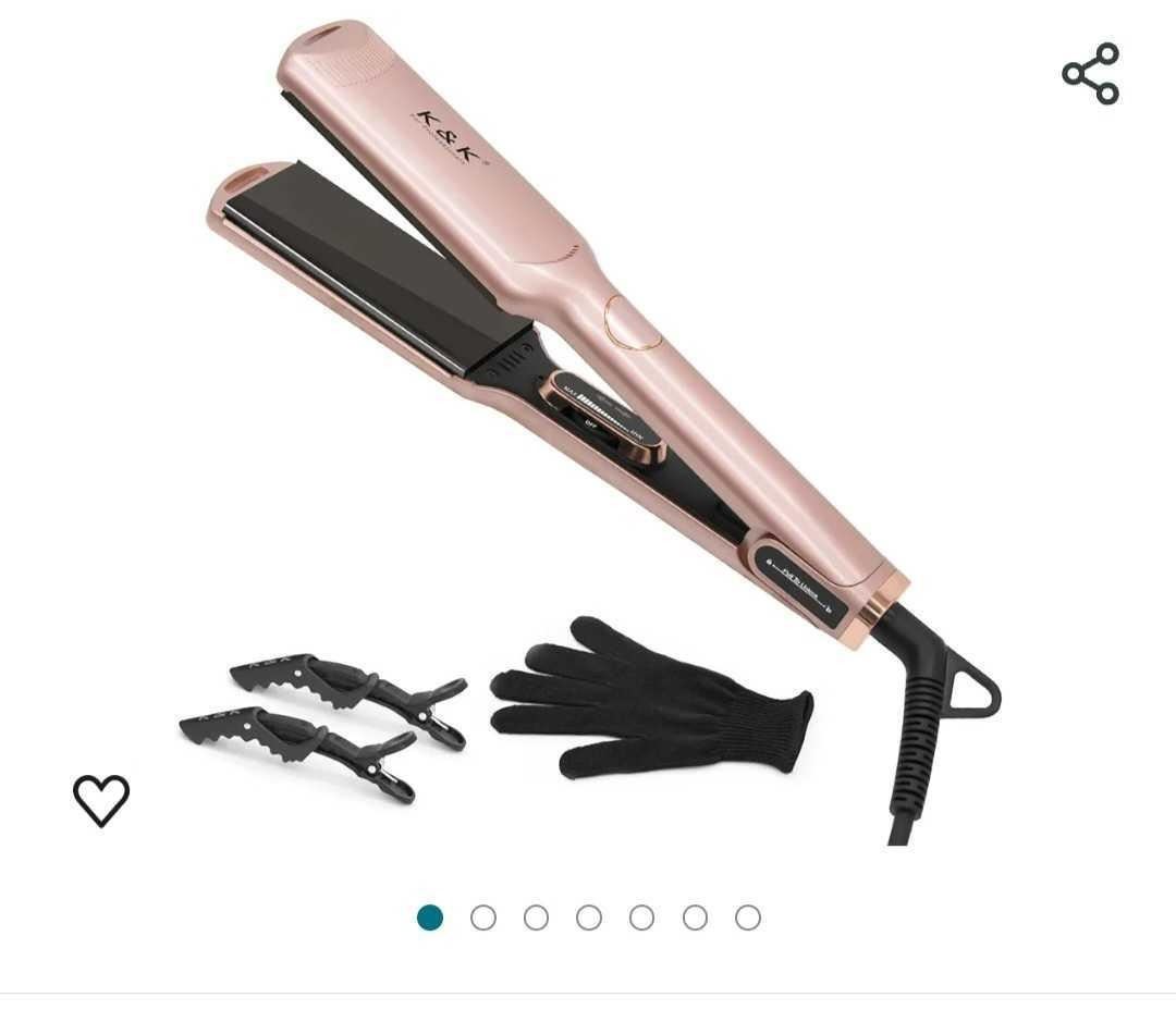 K&K 1 3/4 inch Flat Iron Hair Straightener with Electroplate Titanium Adjustable Temp High Heat 450 Degrees 30s Instant Heats up Tourmaline Ionic with PTC Technology Auto Shut Off