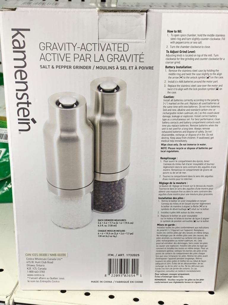 Kamenstein Gravity-Activated Salt and Pepper Grinder Set