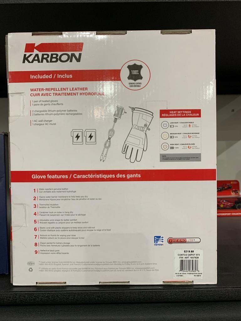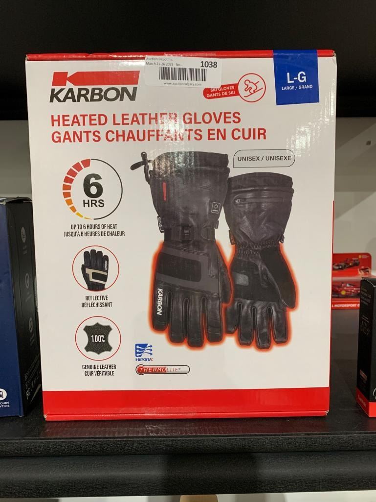 Karbon Heated Leather Gloves L-G Unisex with 6-Hour Heating