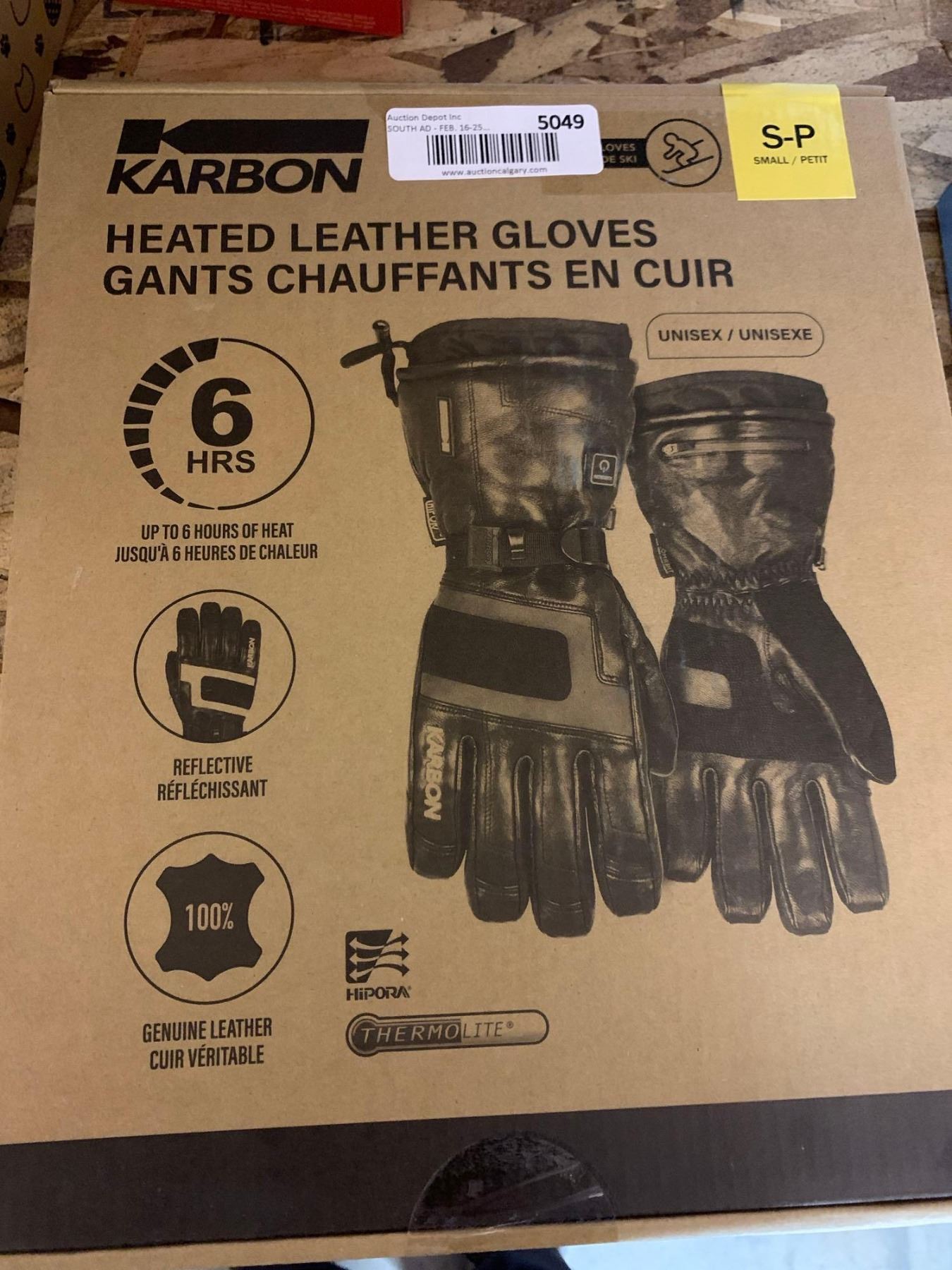 Karbon Heated Lether Gloves Small with battery packs NEW in Box
