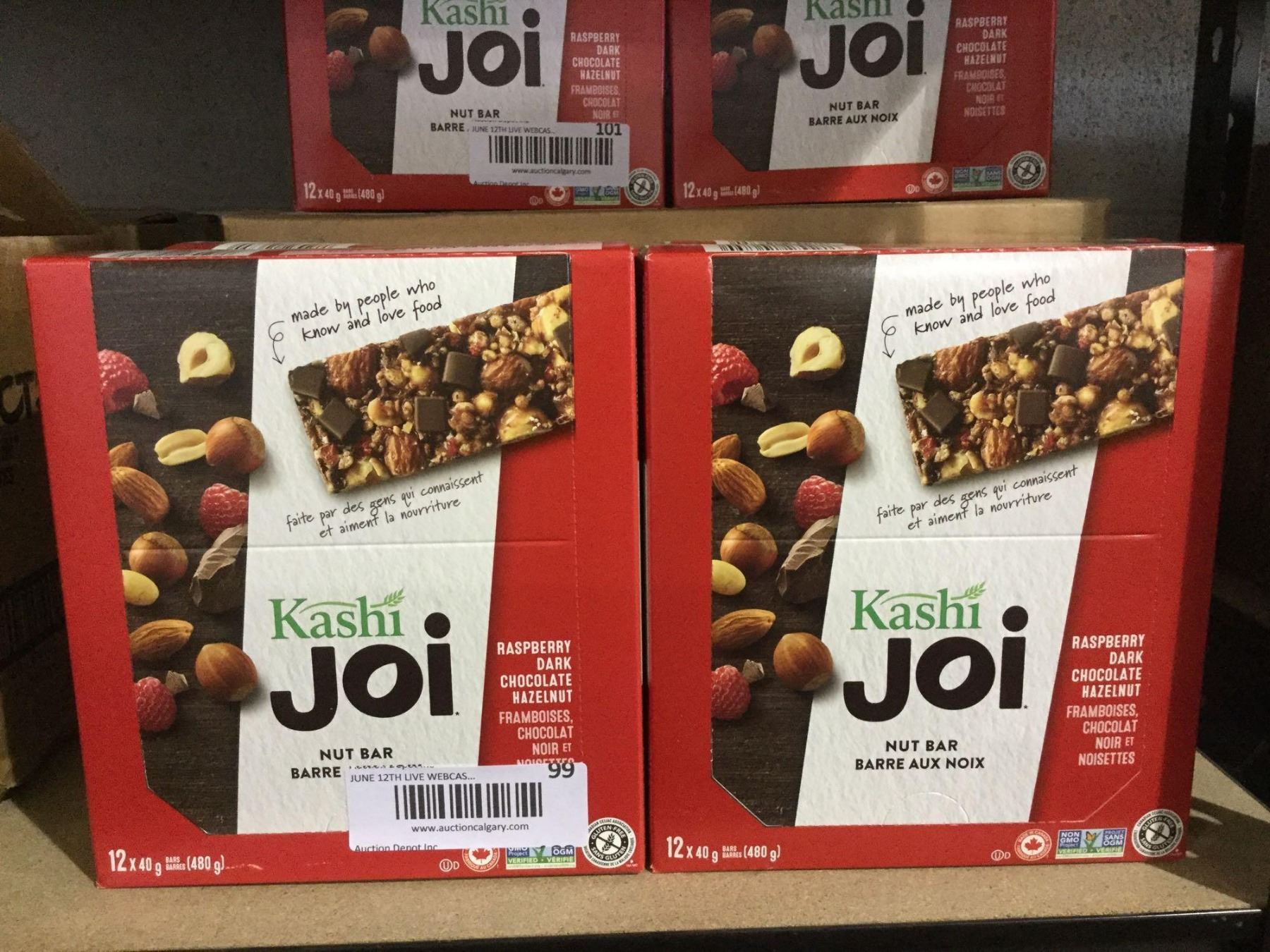 Kashi Joi Raspberry Dark Chocolate Hazelnut Bars (12 x 40g) Lot of 2