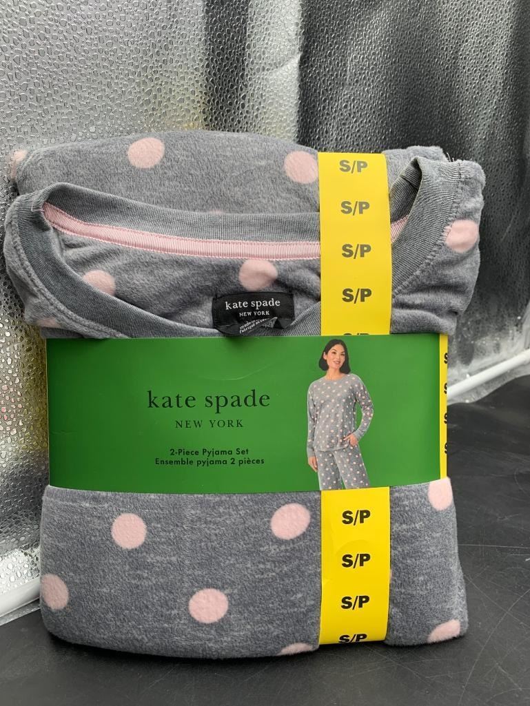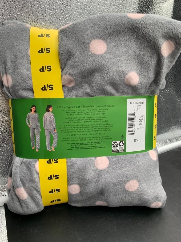 Kate Spade 2-Piece Pajama Set, S/P, Gray with Pink Polka Dots