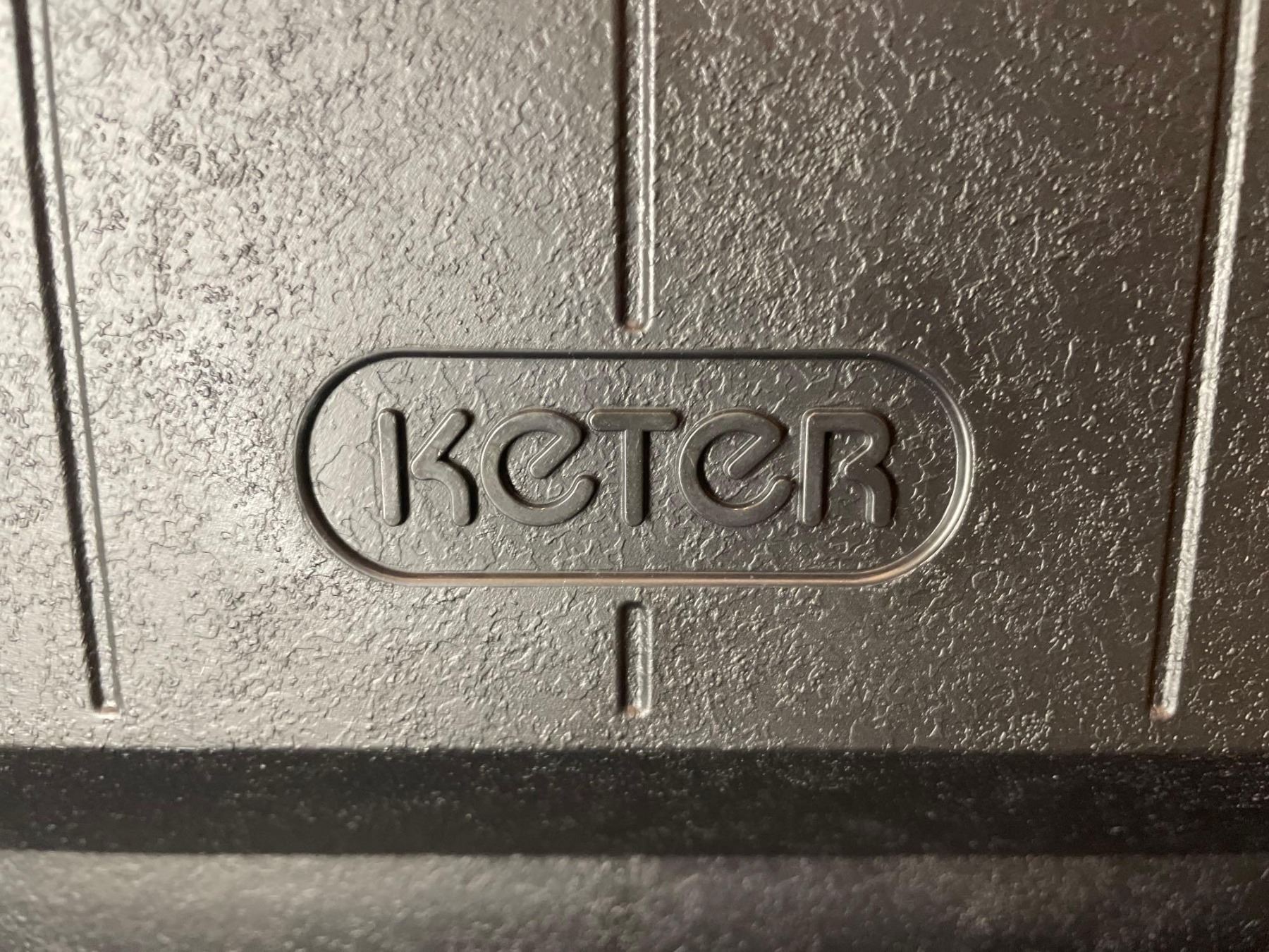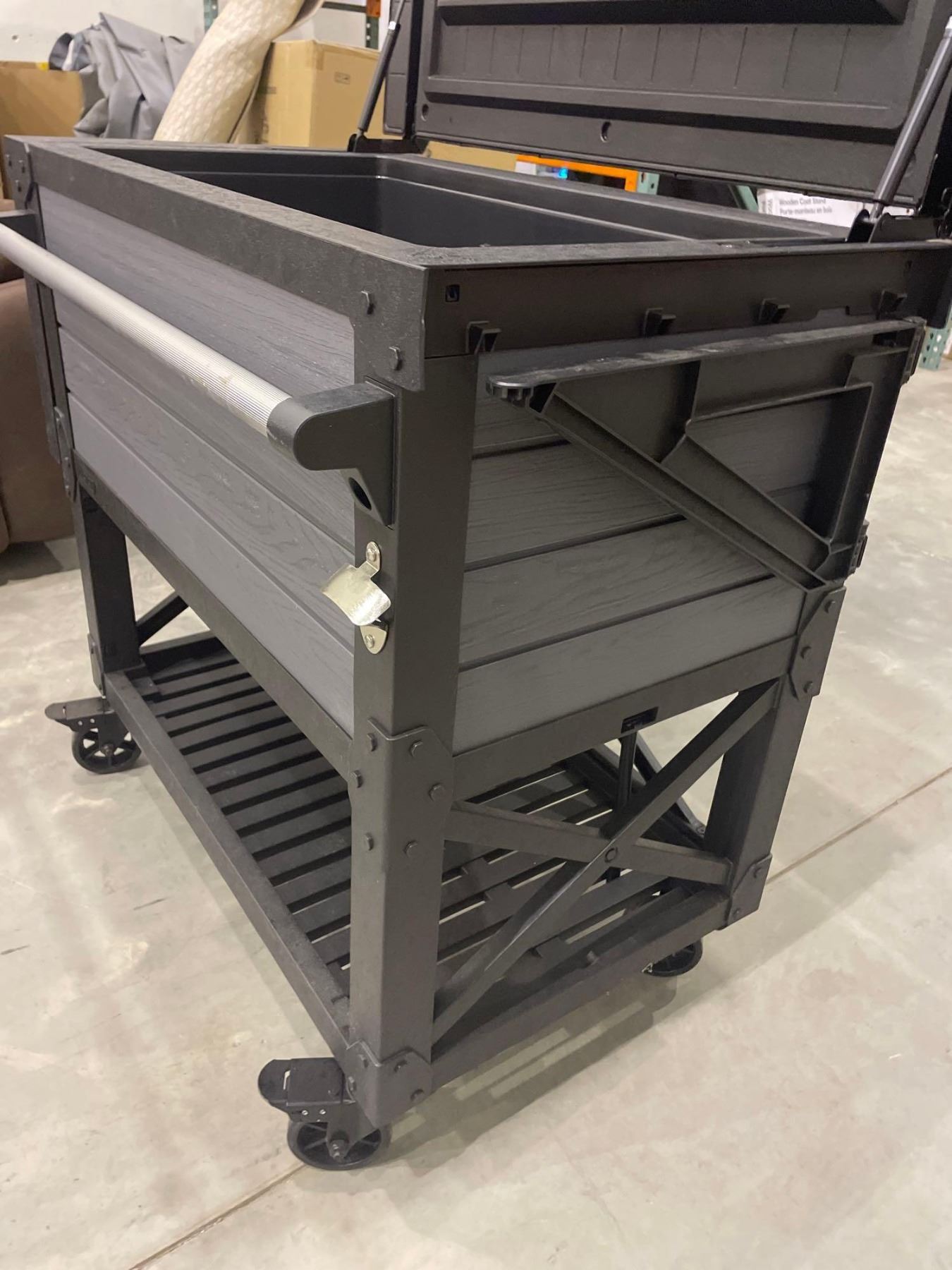 Keter 89.8 Quart Standing Rolling Patio Outdoor Cooler and Insulated Beverage Cart with Fold Down Glass Shelf and Built in Bottle Opener, Gray