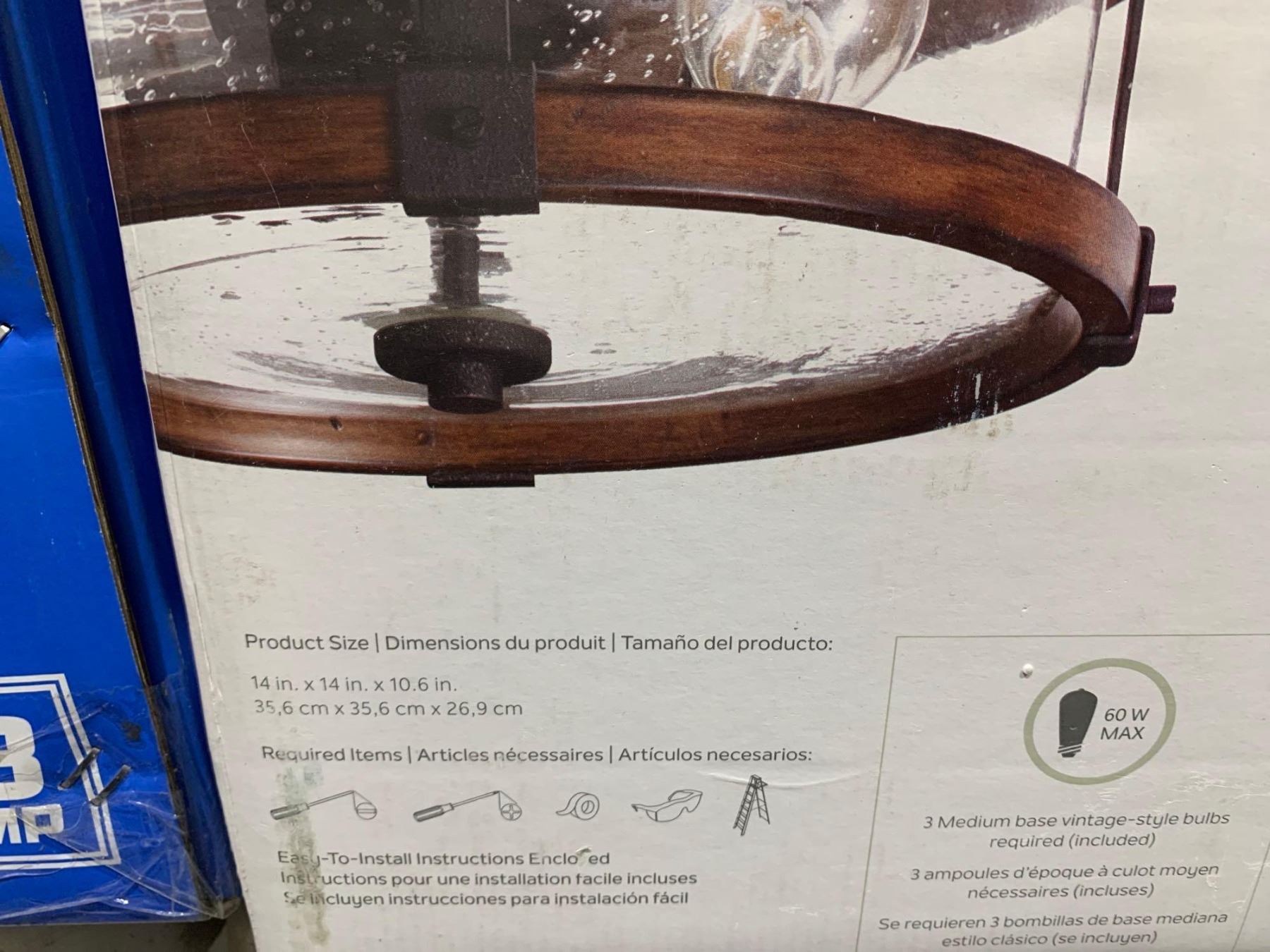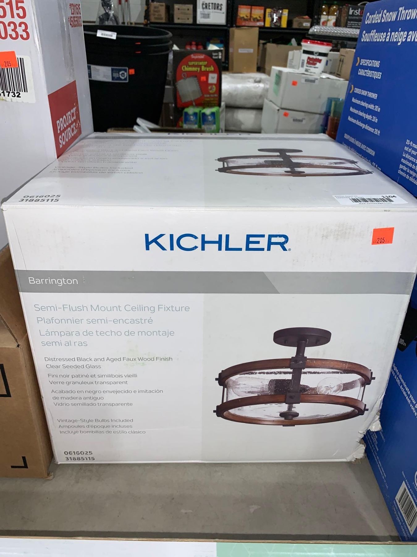 Kichler Barrington Semi Flush Mount Ceiling Fixture Distressed Black & Aged Faux Wood Finish Clear Seeded Glass