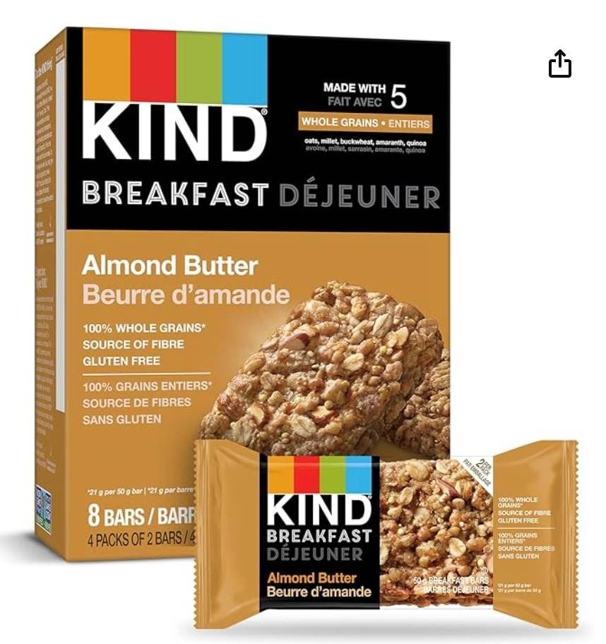 Kind Breakfast Almond Butter Bars, 8 Bars per Pack (Lot of 2 Packs)