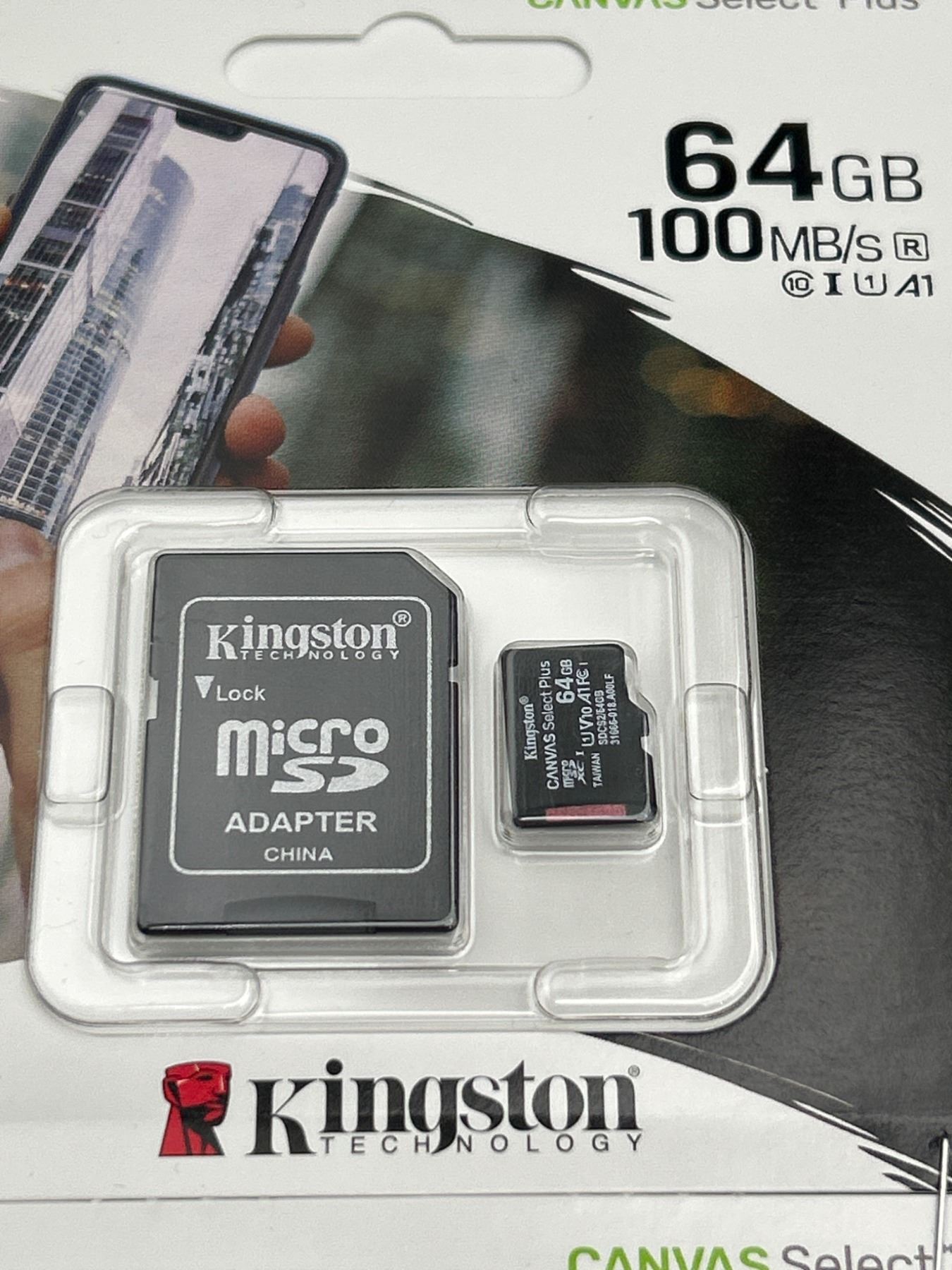 Kingston Canvas Select Plus MicroSD Card 64GB with Adapter – LOT OF 2