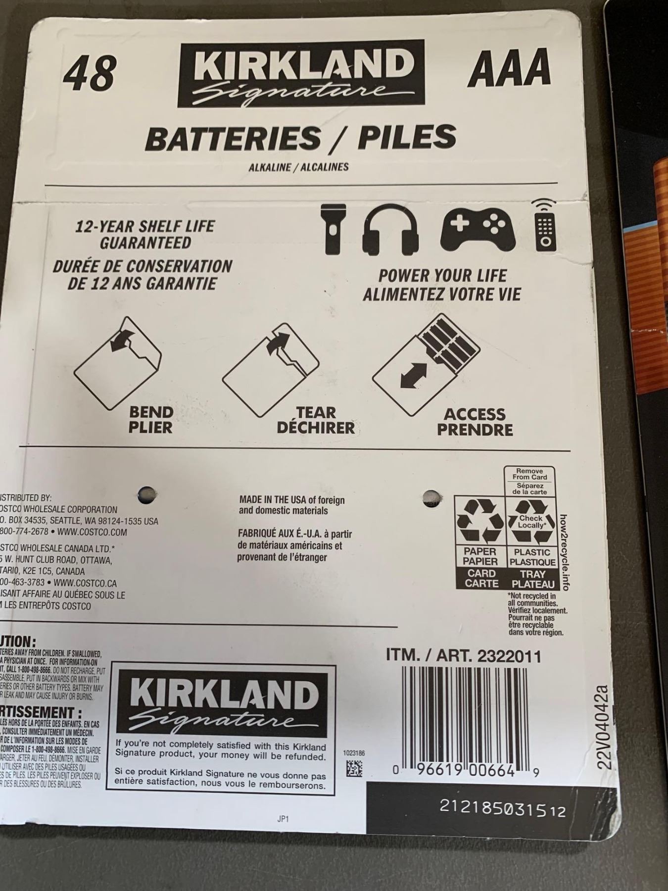 Kirkland AAA 48 pack Batteries